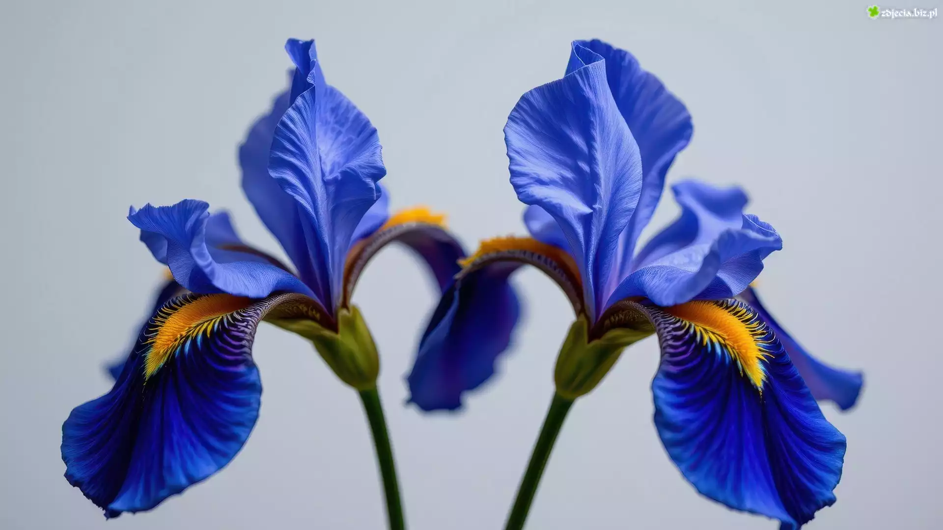 Zdjęcie Dwa, Rozkwitnięte, Niebieskie, Irysy