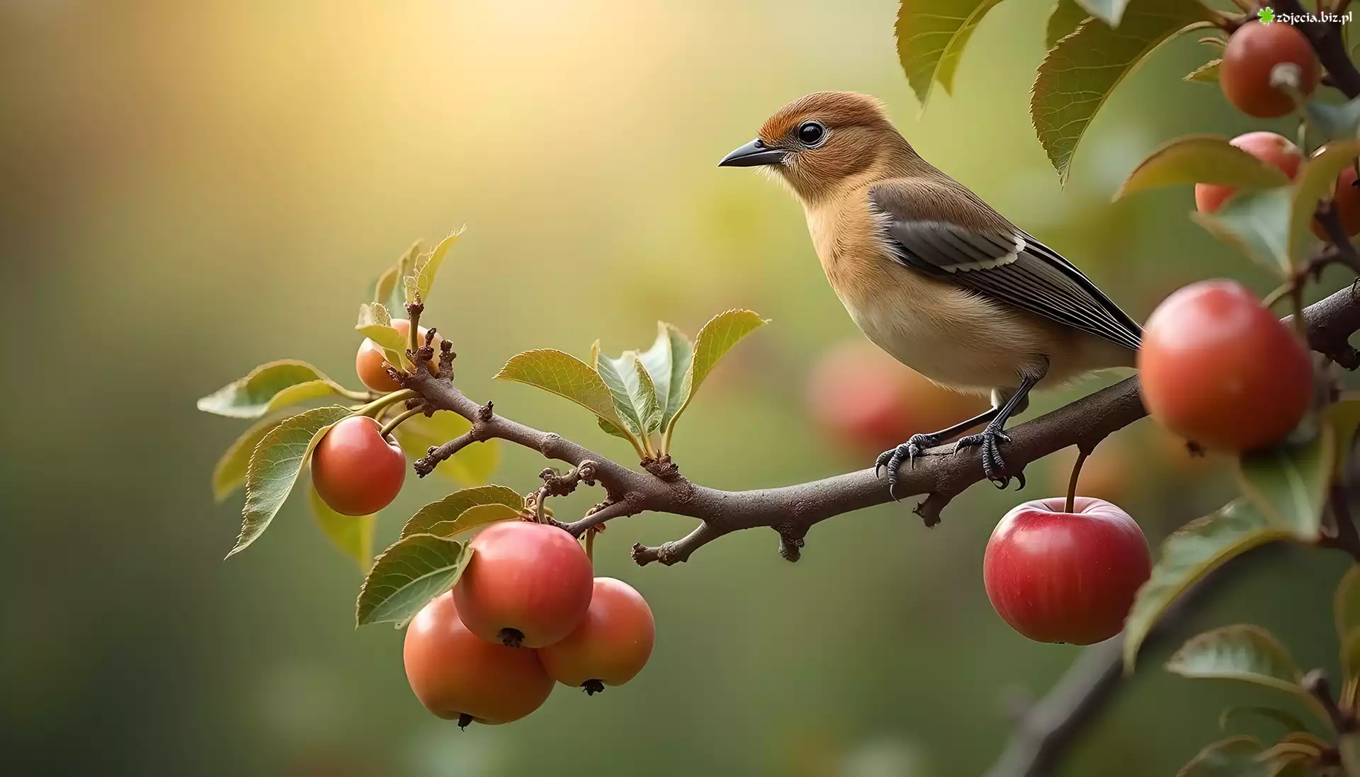 Zdjęcie Brązowy, Ptak, Gałązka, Jabłka