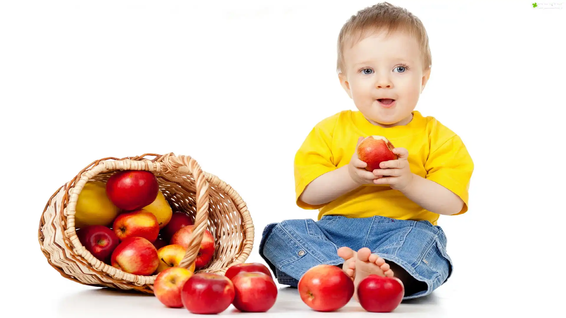 Zdjęcie Chłopczyk, Jabłka, Kosz