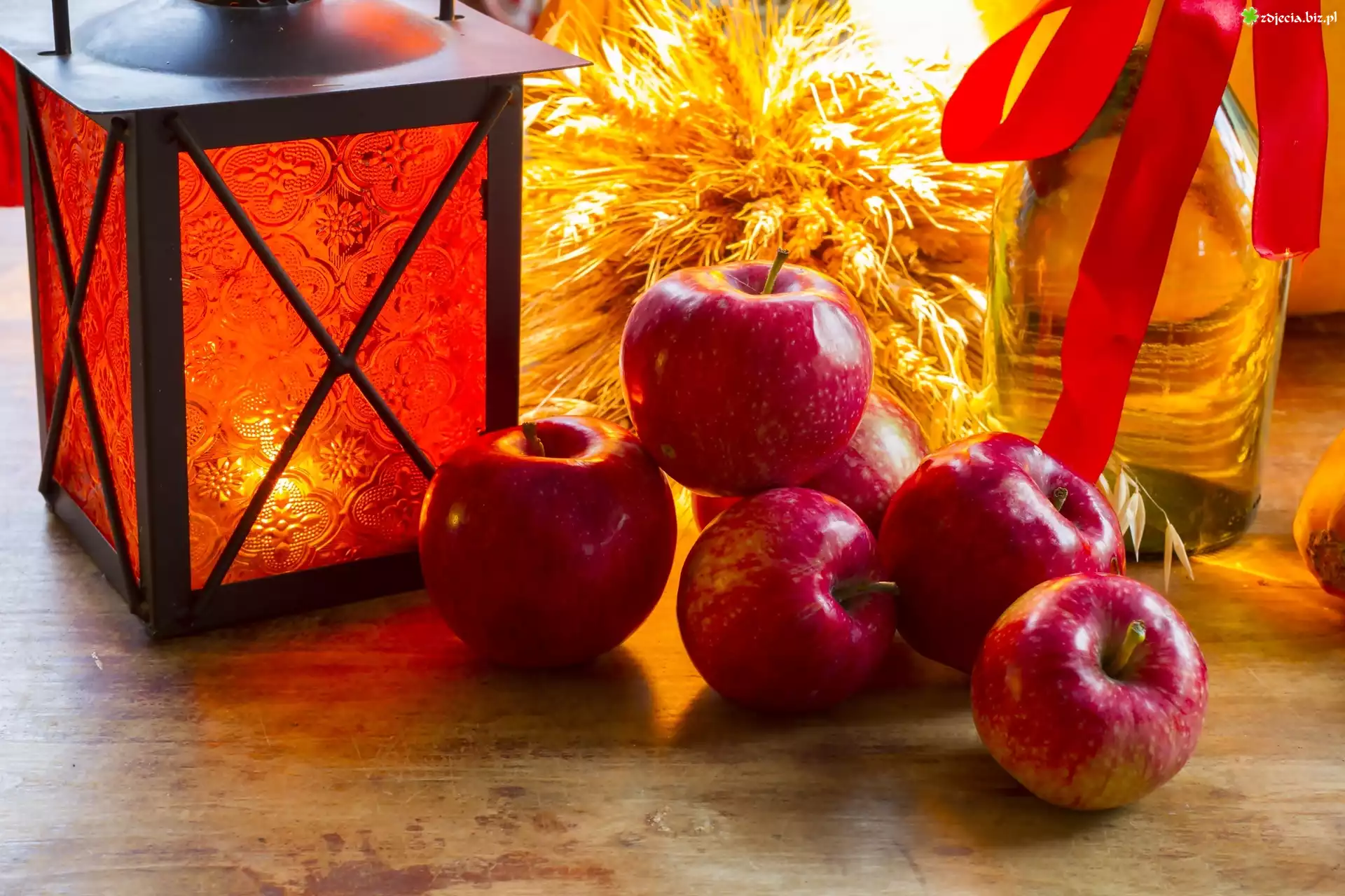 Zdjęcie Jabłka, Lampion, Butla, Jesienna, Kompozycja