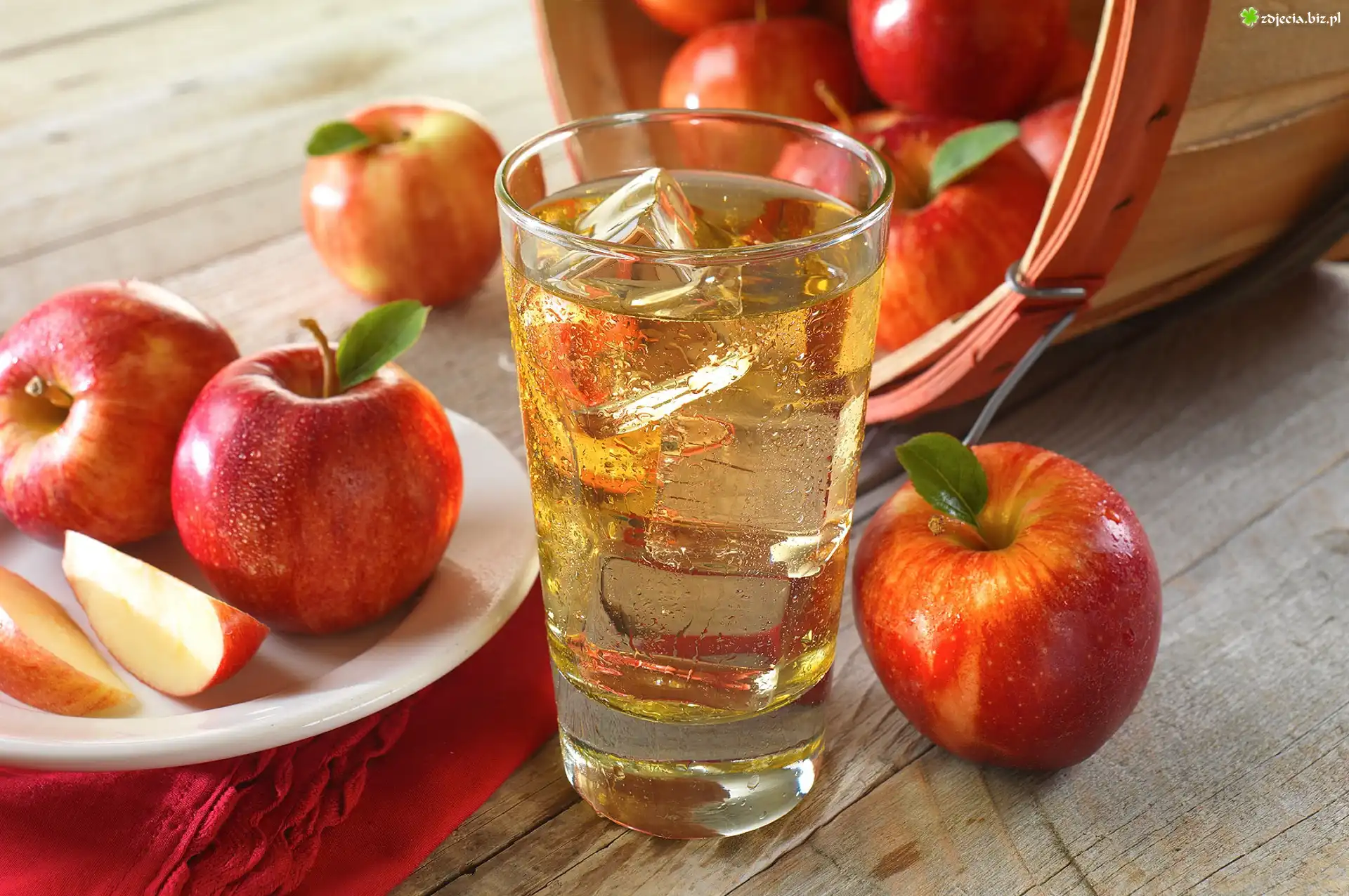 Zdjęcie Jabłka, Talerz, Wiaderko, Szklanka, Sok
