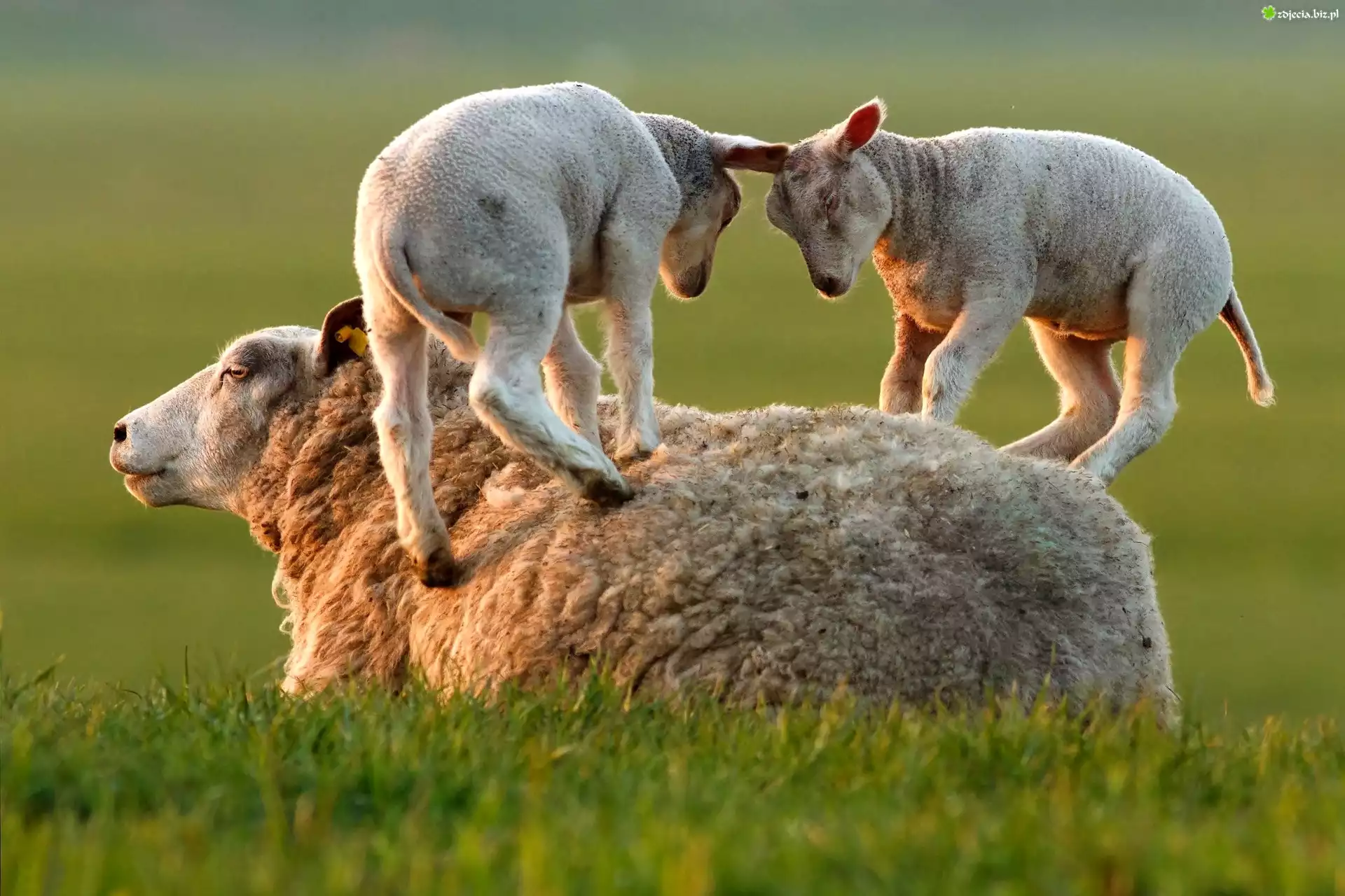 Zdjęcie Łąka, Owca, Jagnięta, Zabawa