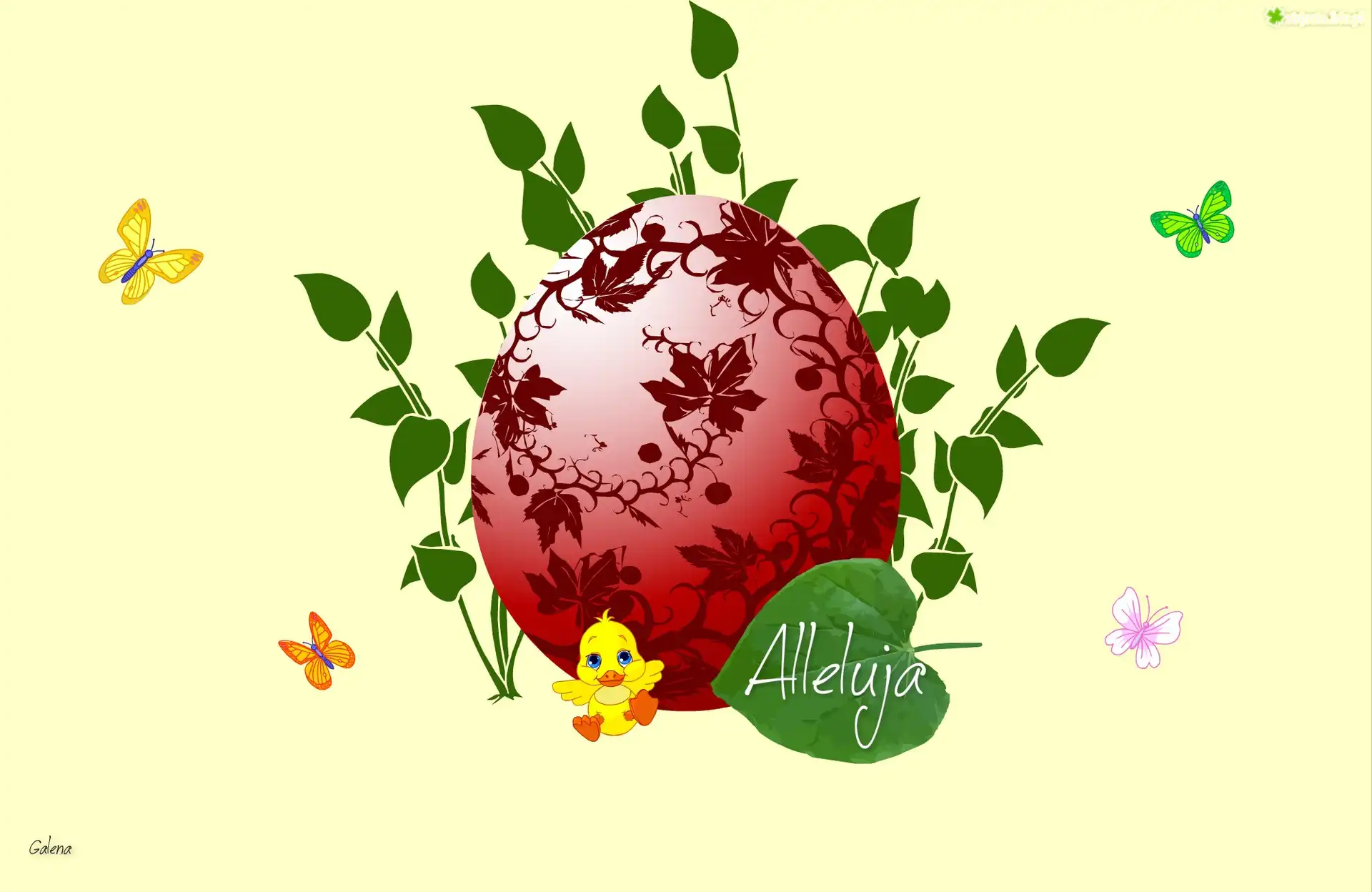 Zdjęcie Jajko, Kurczaczek, Rośliny, Motylki, Wielkanoc, Grafika