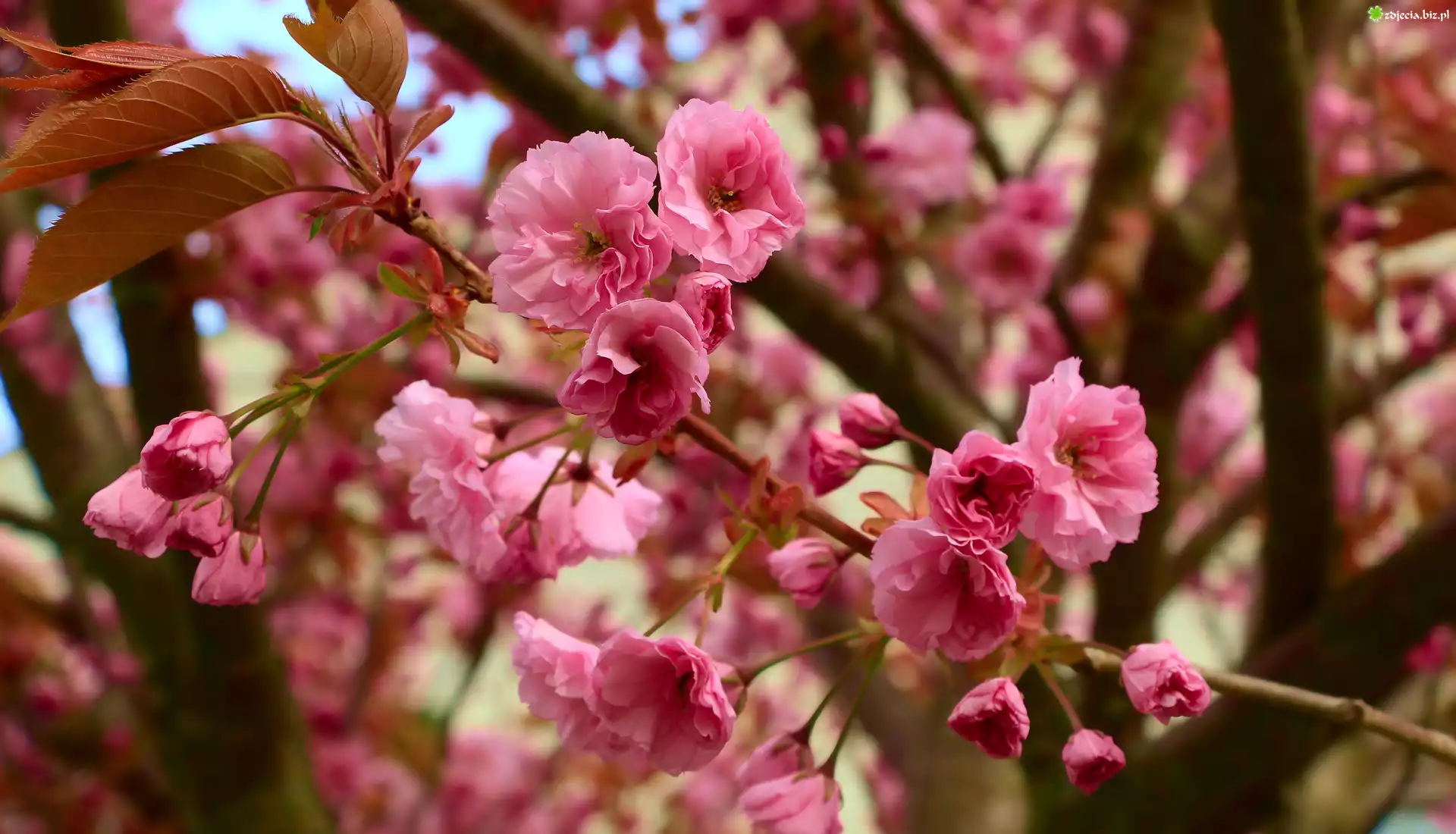Zdjęcie Różowe, Kwiaty, Wiśnia japońska, Drzewo owocowe, Gałązki
