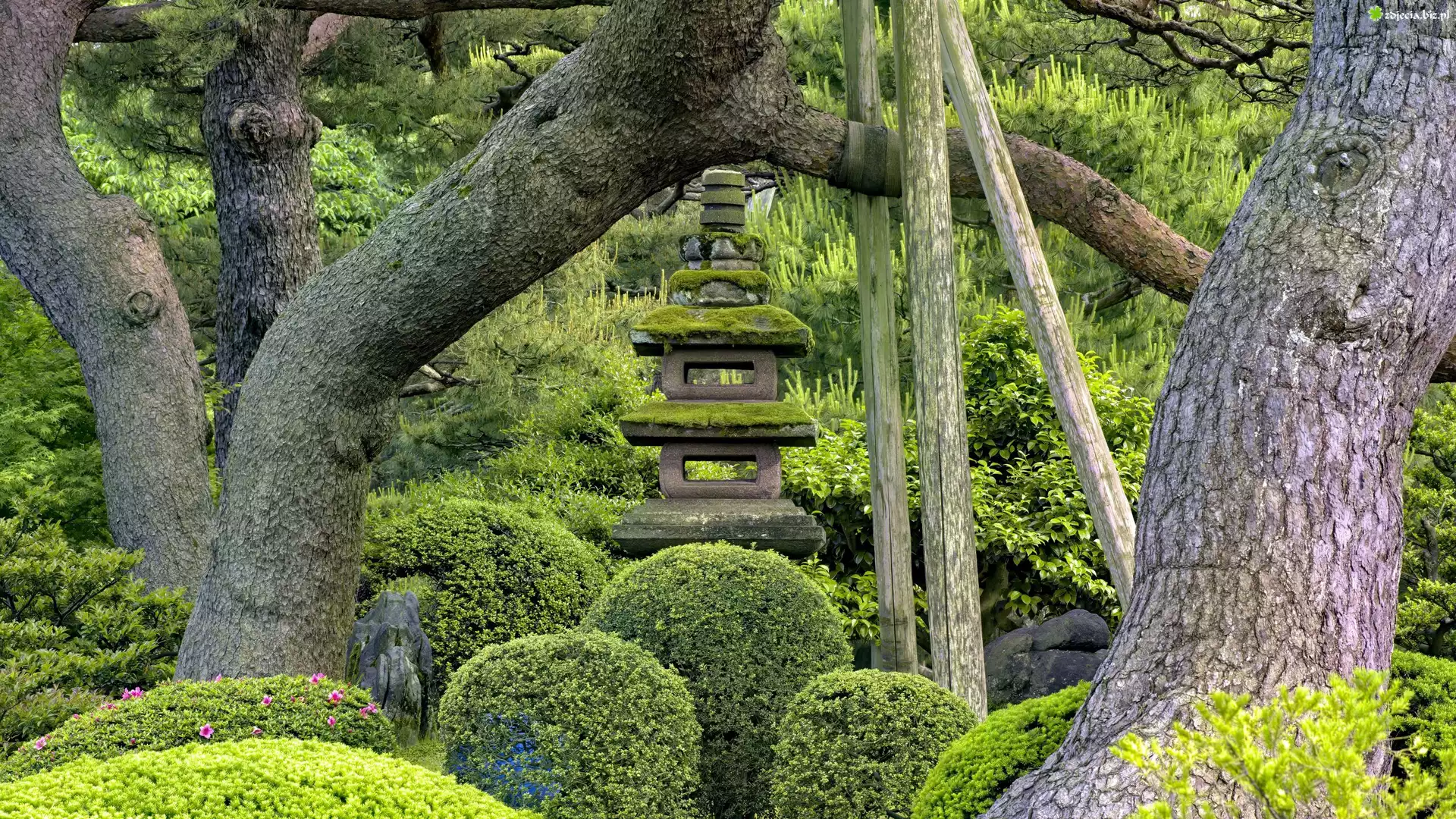 Zdjęcie Ogród, Japoński, Kamienie, Zieleń, Drzewa
