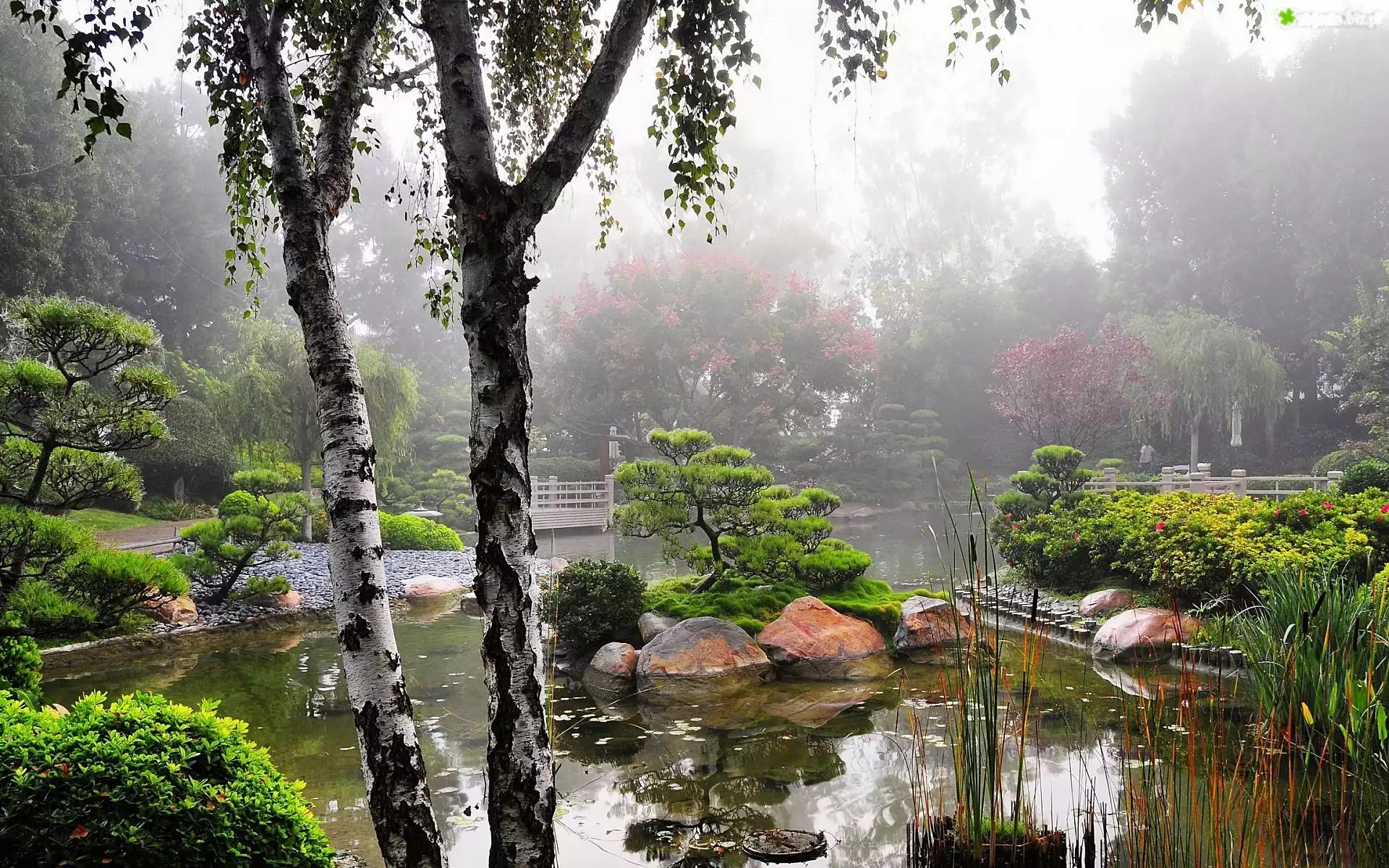 Zdjęcie Japoński, Ogród, Poranek, Mgła