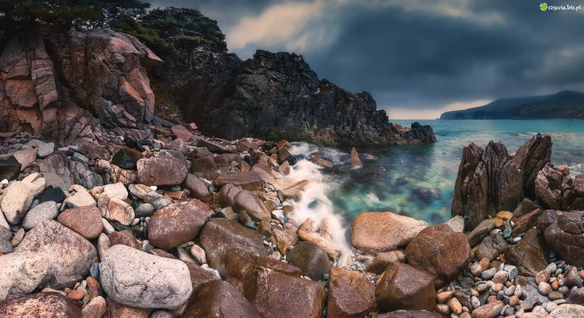 Zdjęcie Morze Japońskie, Skały, Kamienie, Ciemne, Chmury, Rosja