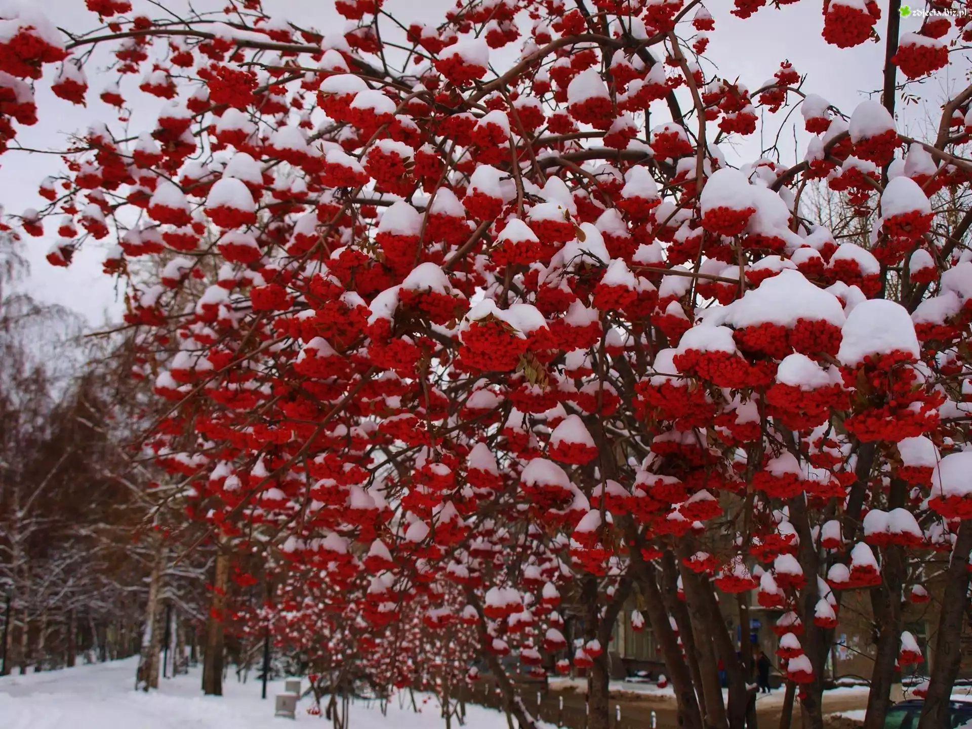 Zdjęcie, Owoce, Jarzębiny, Śnieg