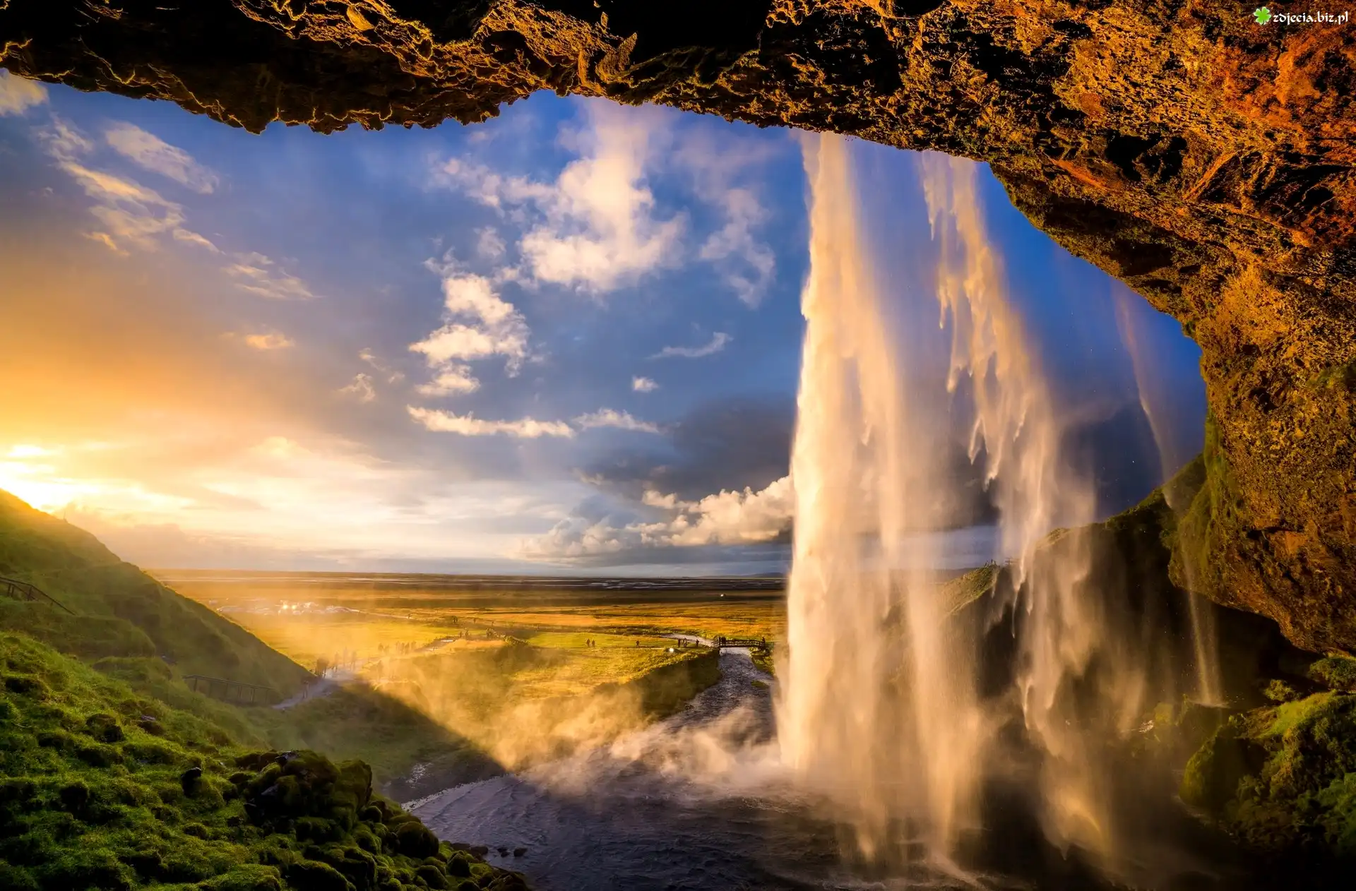 Zdjęcie, Jaskinia, Wodospad, Rzeka, Niebo