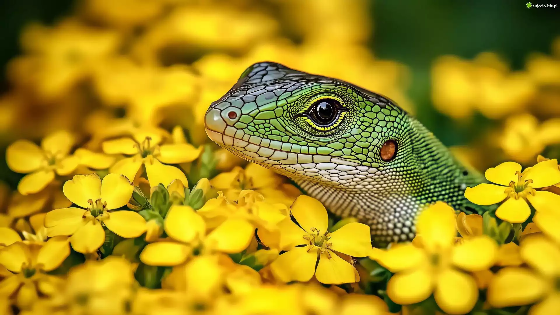 Zdjęcie Jaszczurka, Żółte, Kwiaty