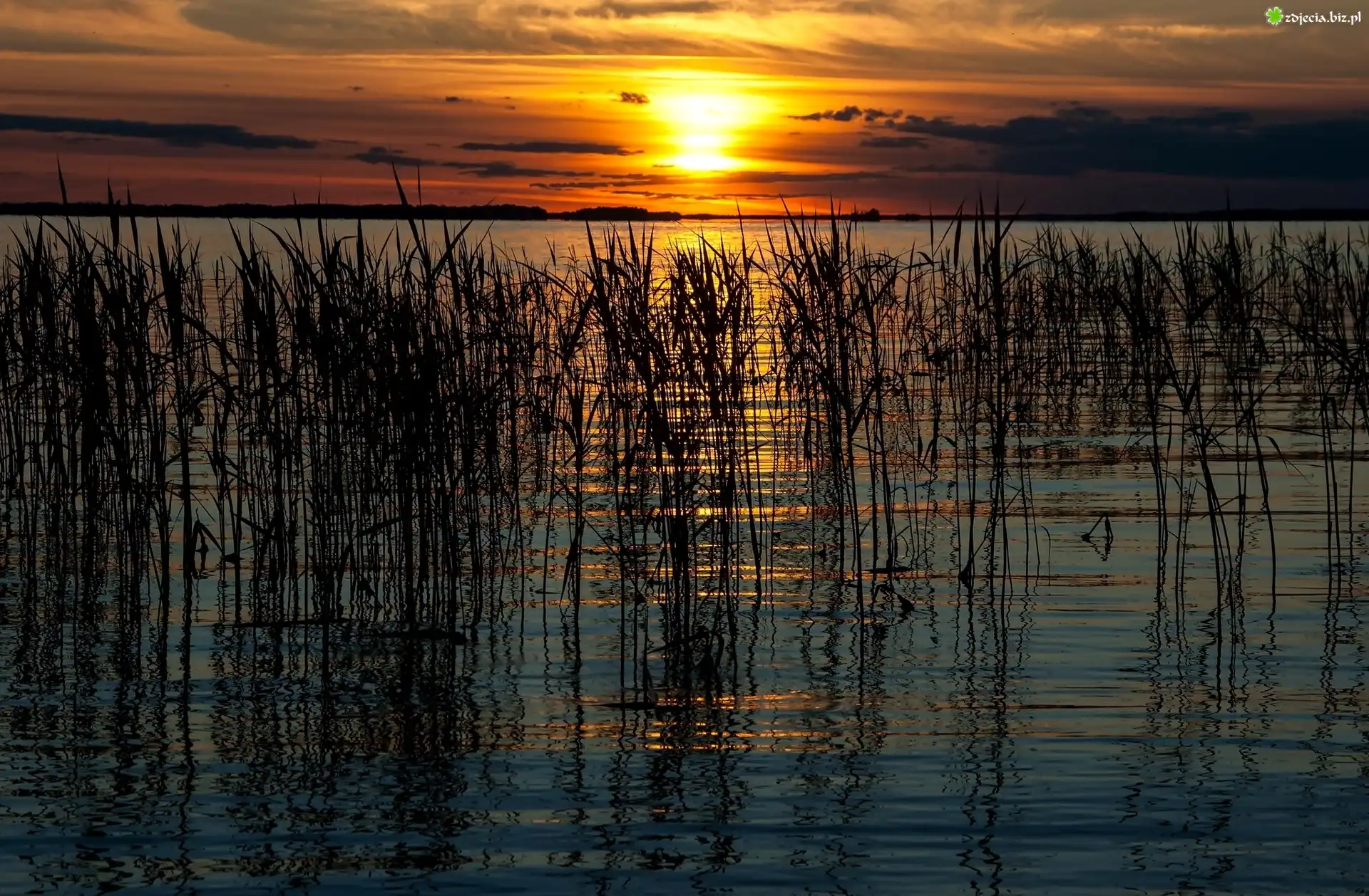 Zdjęcie Jeioro, Trawy, Zachód, Słońca