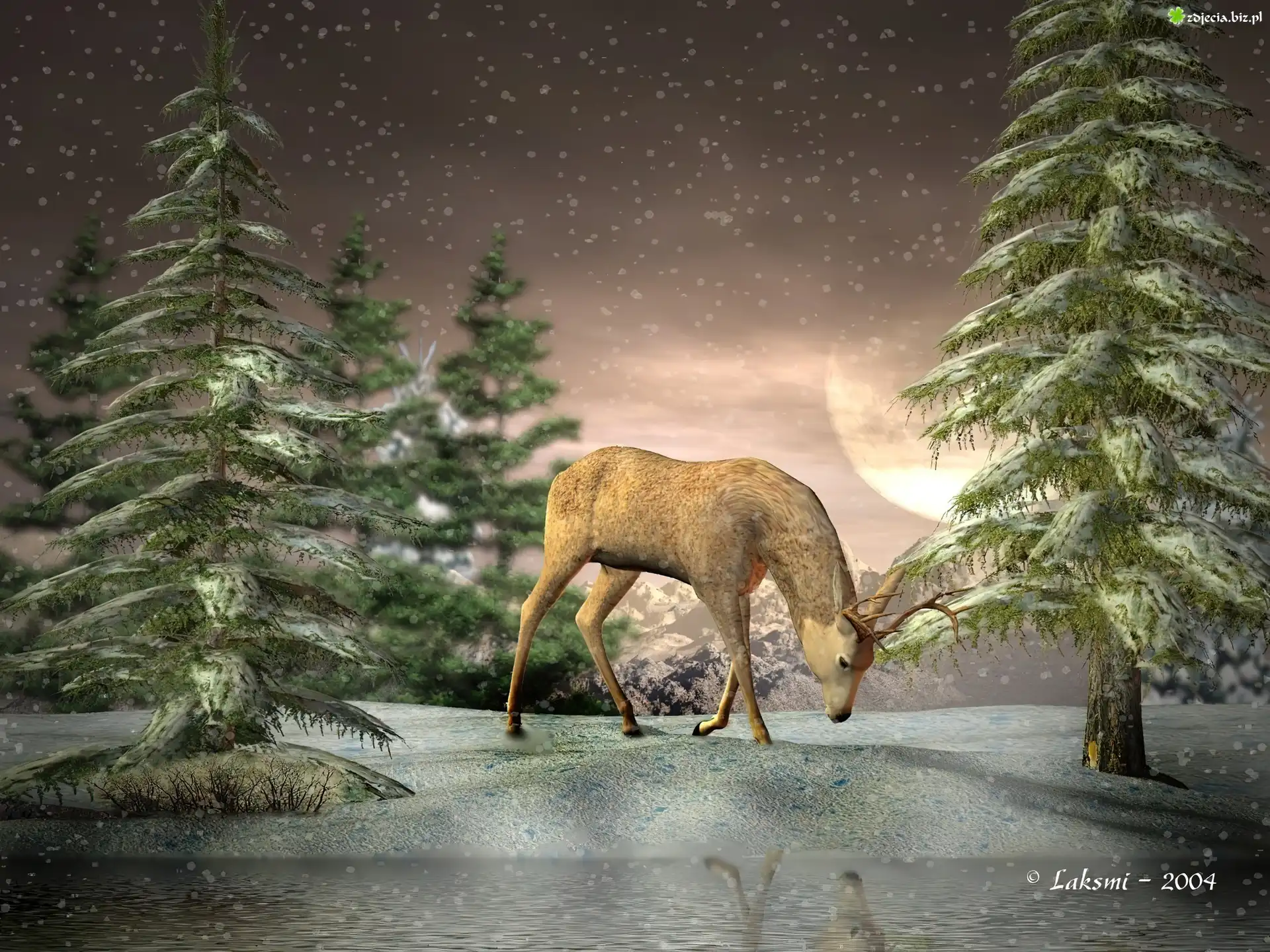 Zdjęcie Jeleń, Śnieg, Las, 3D