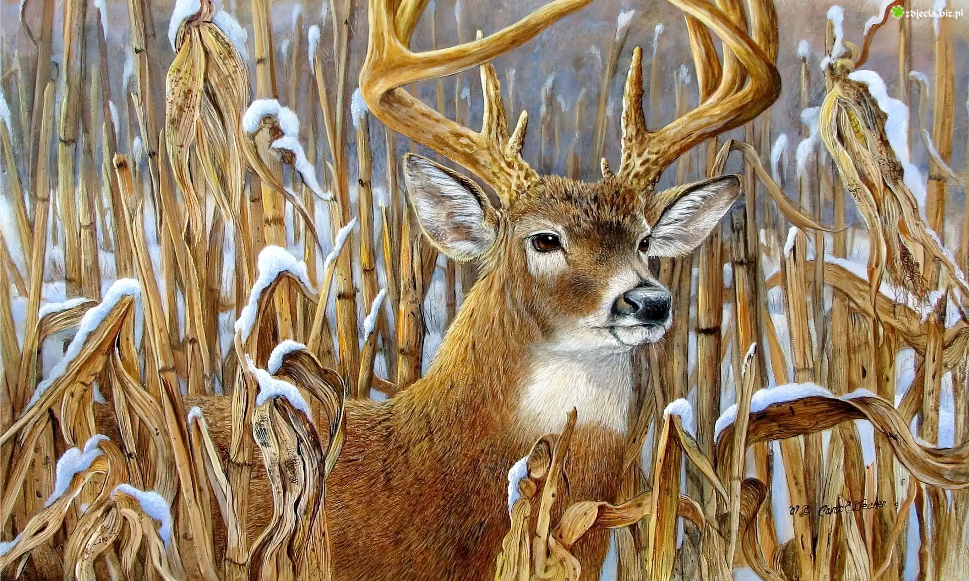 Zdjęcie Jeleń, Uschłe, Trawy, Śnieg