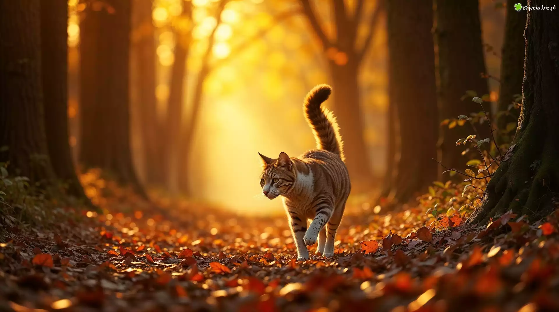 Zdjęcie Kot, Las, Ścieżka, Jesień, Grafika AI