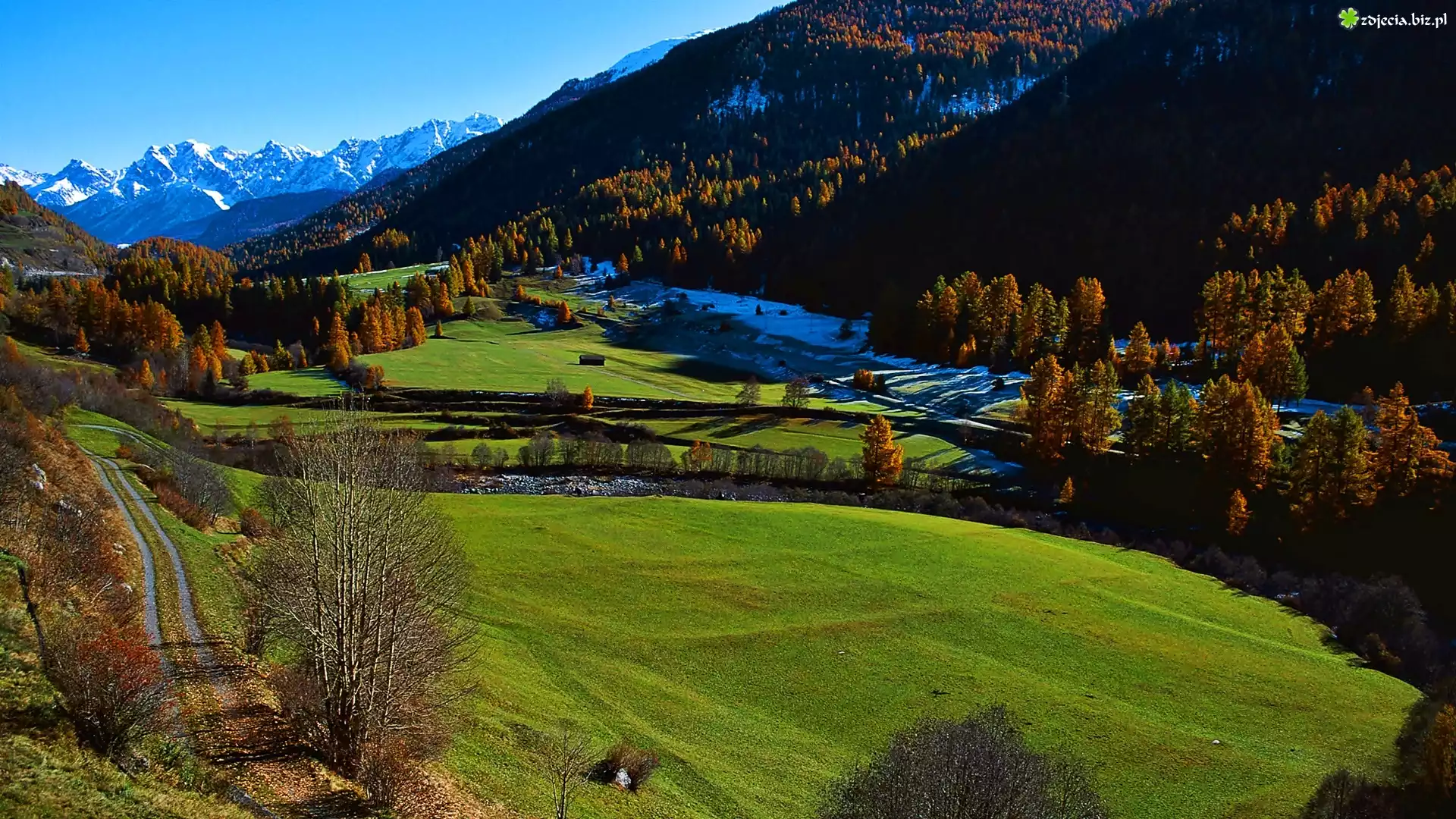 Zdjęcie Jesień, Góry, Lasy, Łąki, Droga