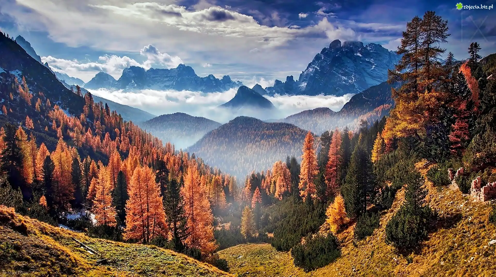 Zdjęcie Jesień, Góry, Lasy, Łąki, Wzgórza