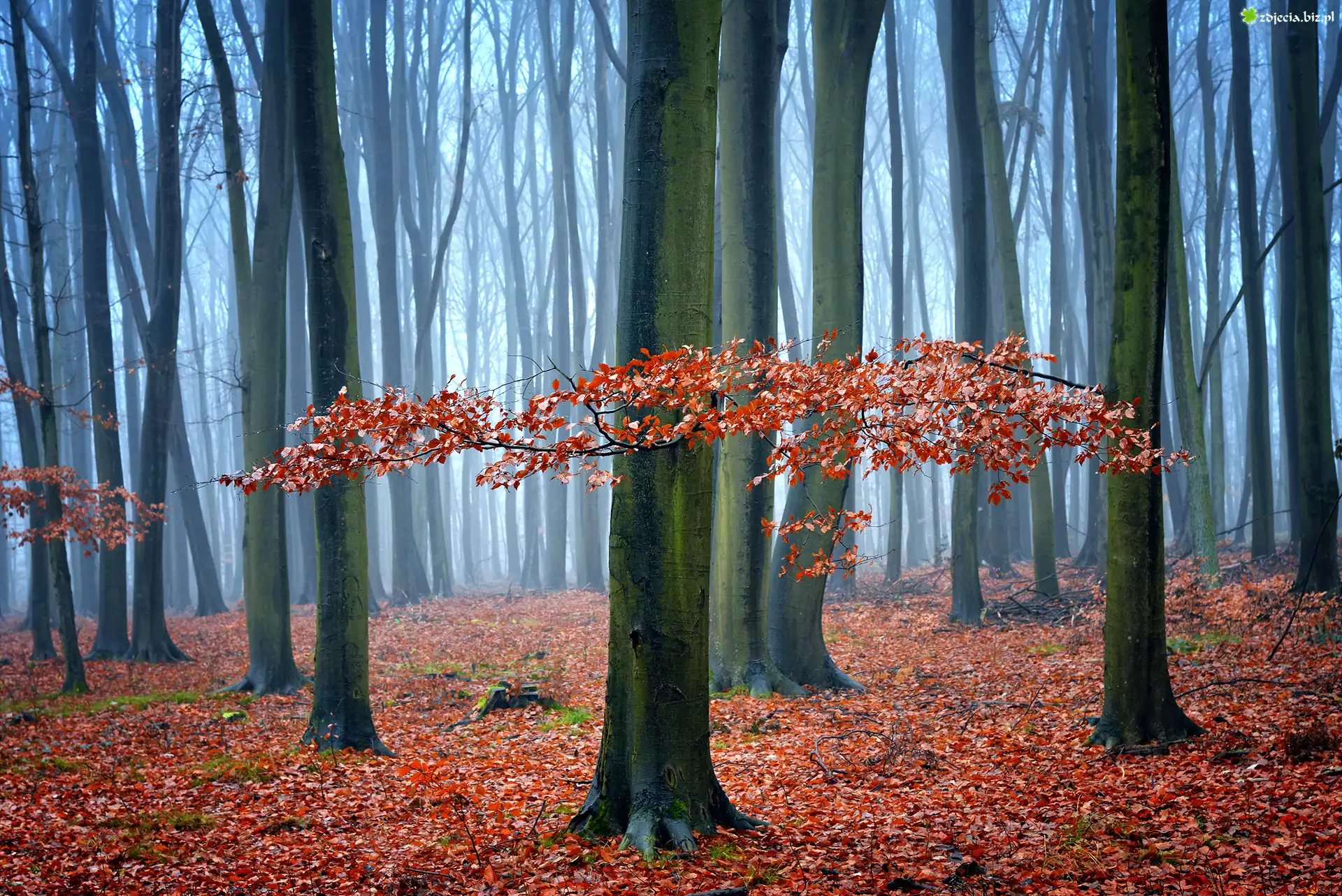 Zdjęcie Jesień, Las, Drzewa, Opadłe, Brązowe, Liście