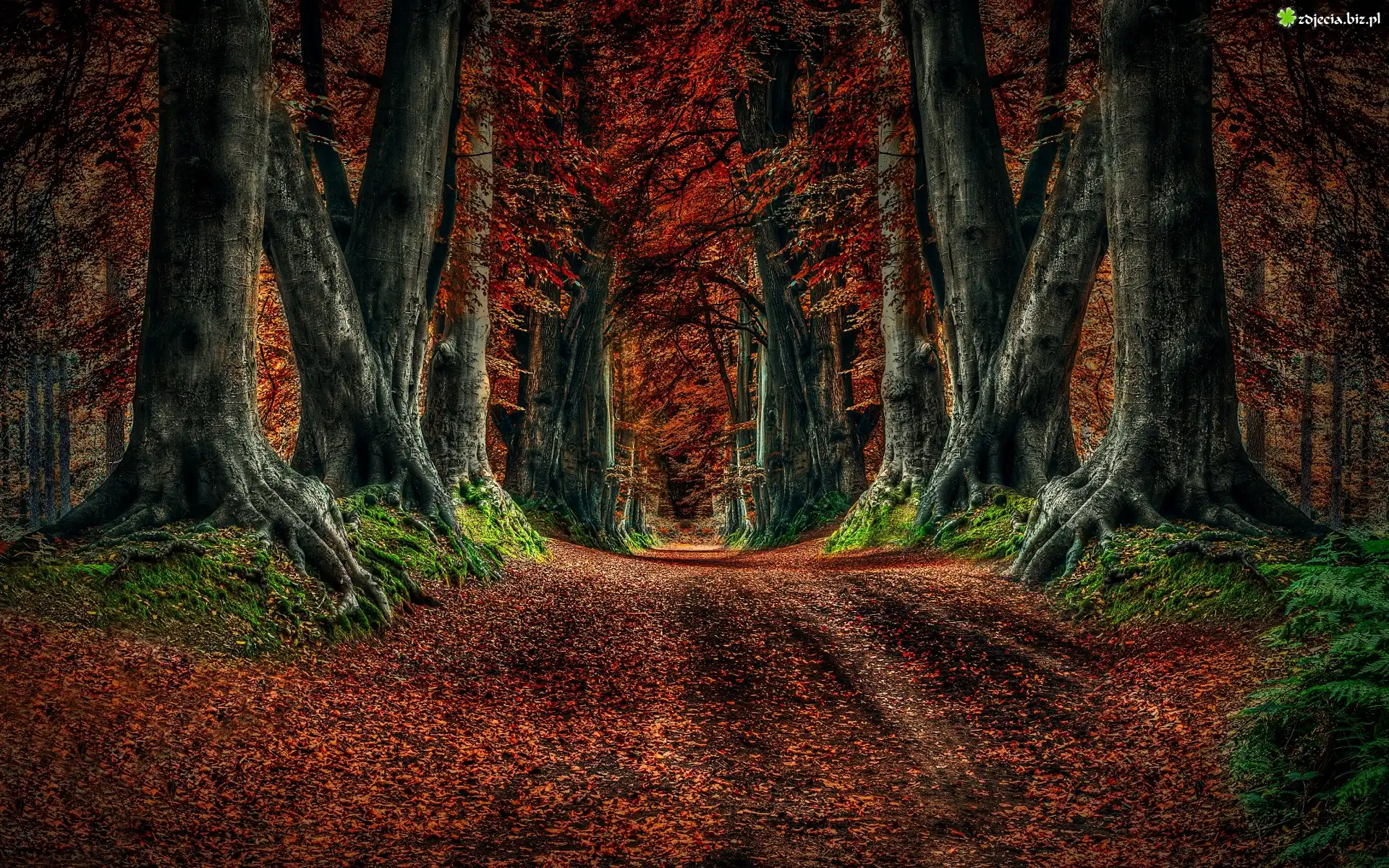 Zdjęcie Jesień, Drzewa, Droga, Las