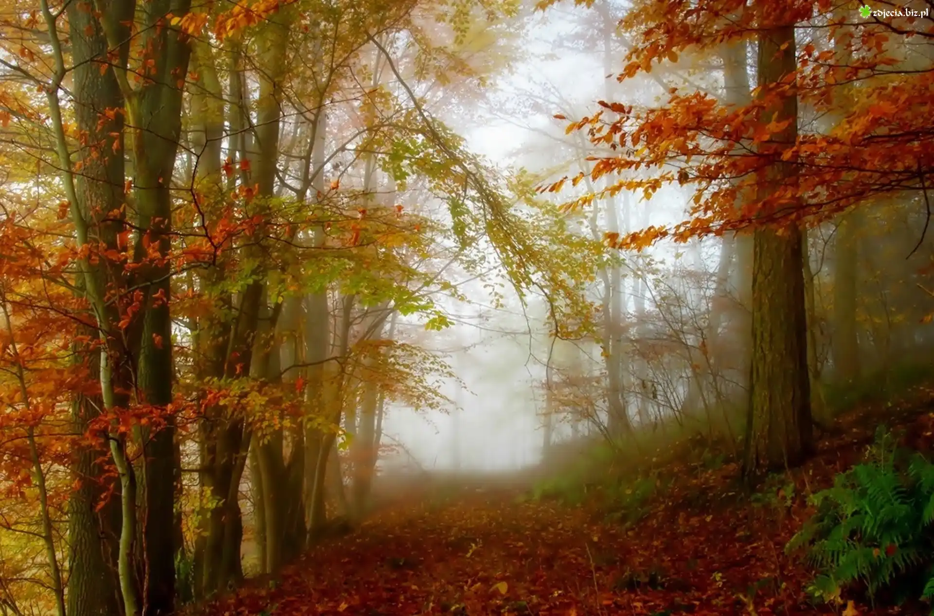 Zdjęcie, Jesień, Las, Droga, Mgła