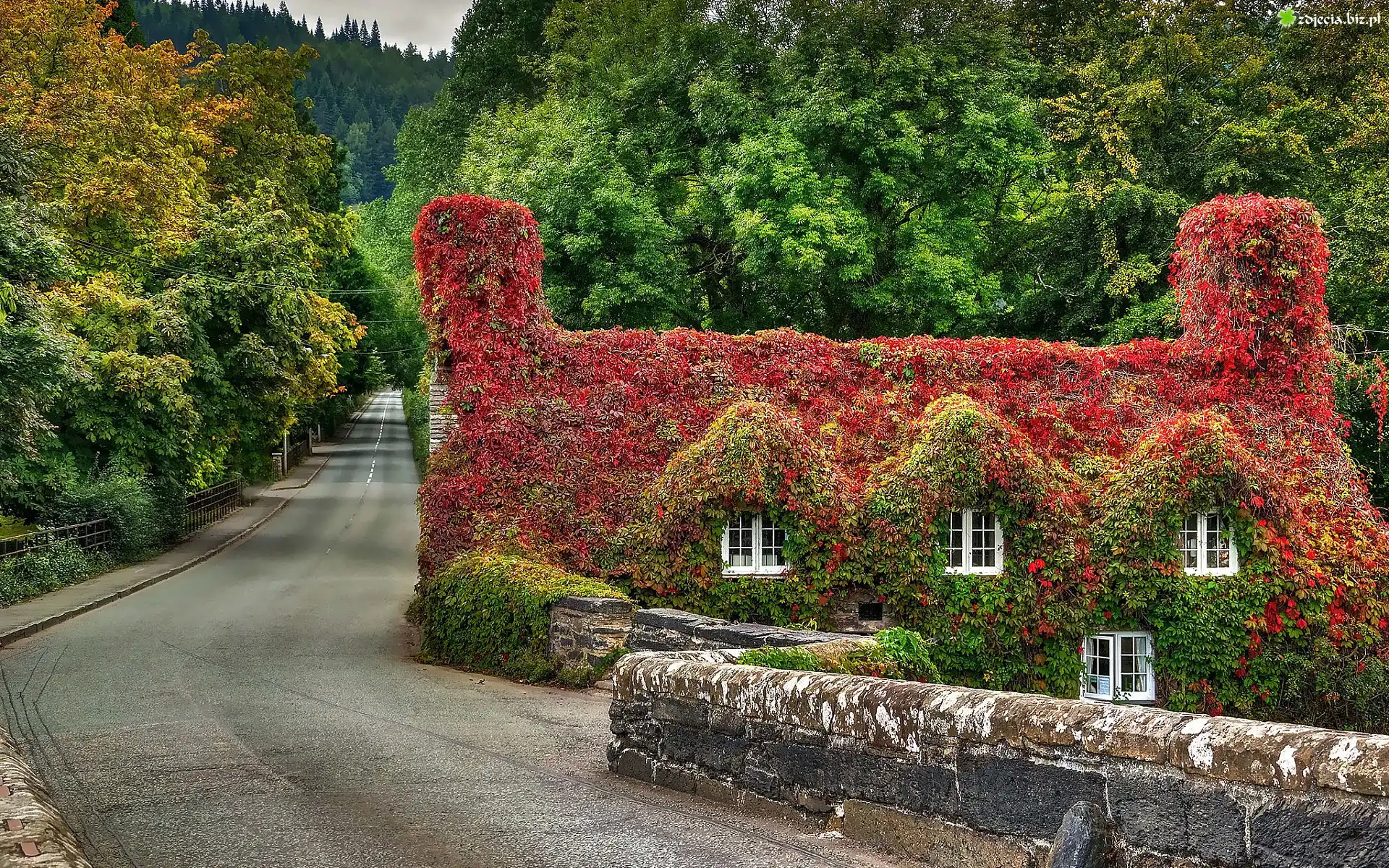 Zdjęcie Jesień, Dom, Liście, Droga, Las