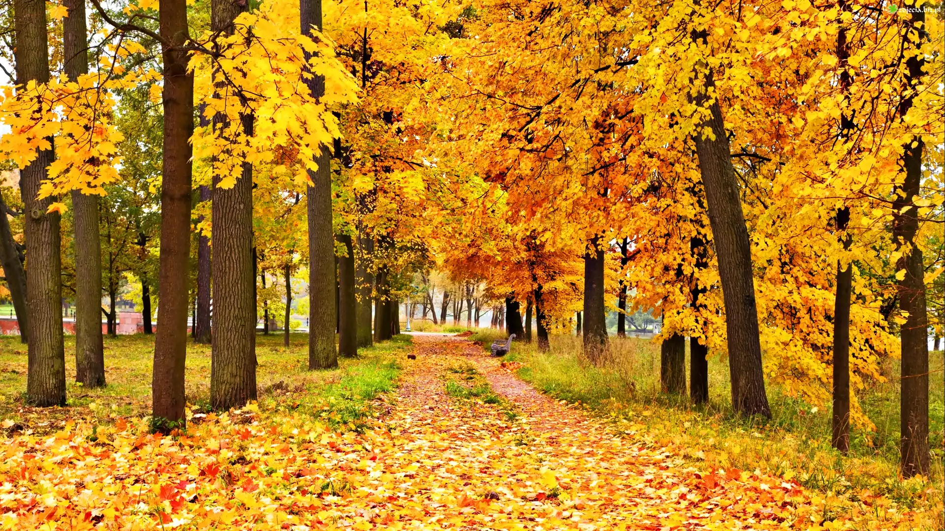 Zdjęcie Jesień, Park, Alejka, Drzewa, Liście