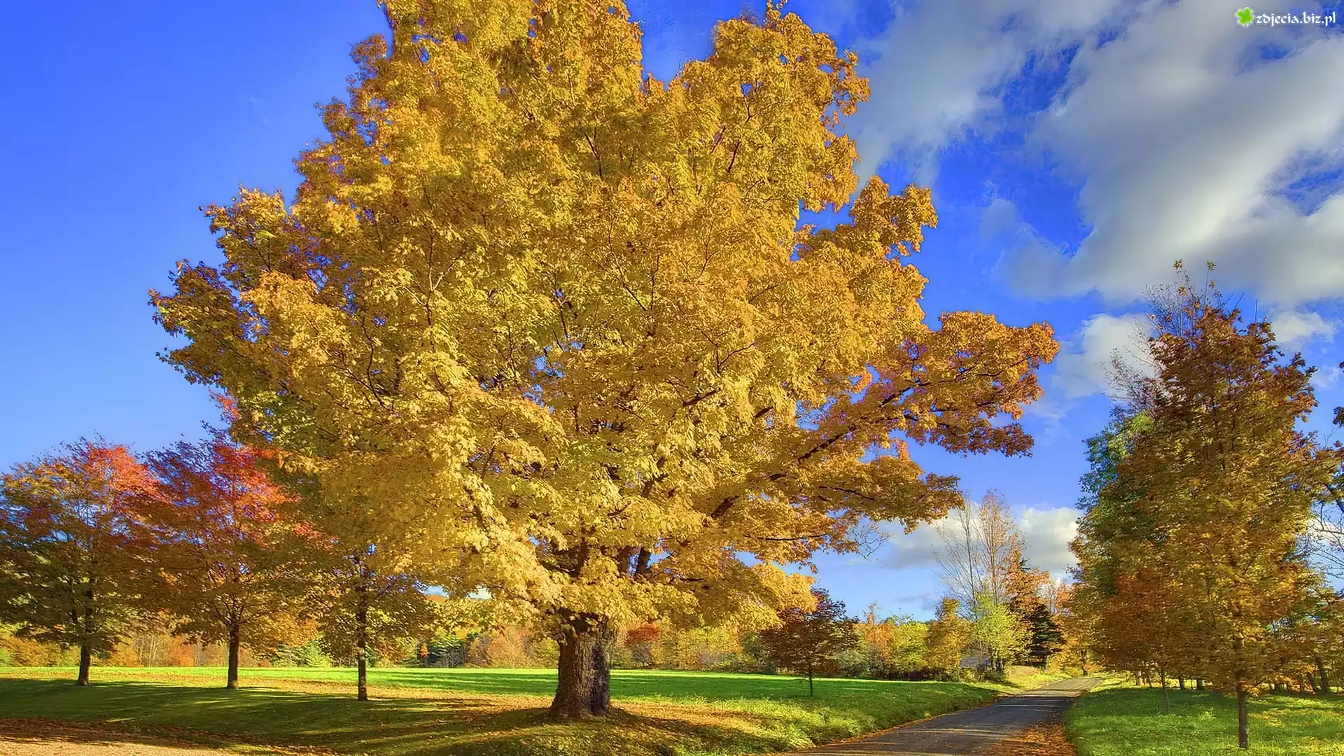 Zdjęcie Jesień, Chmurki, Drzewa, Droga
