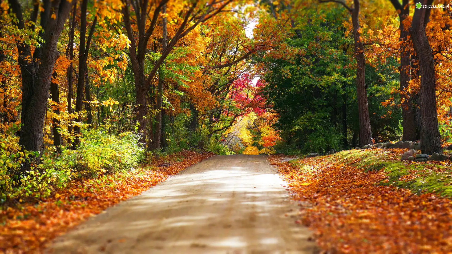 Zdjęcie Jesień, Droga, Las, Drzewa, Liście