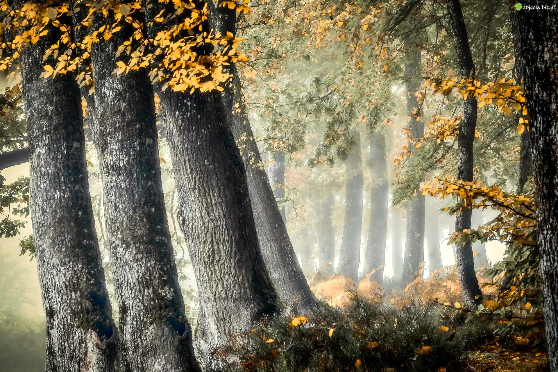 Zdjęcie, Jesień, Las, Drzewa, Mgła