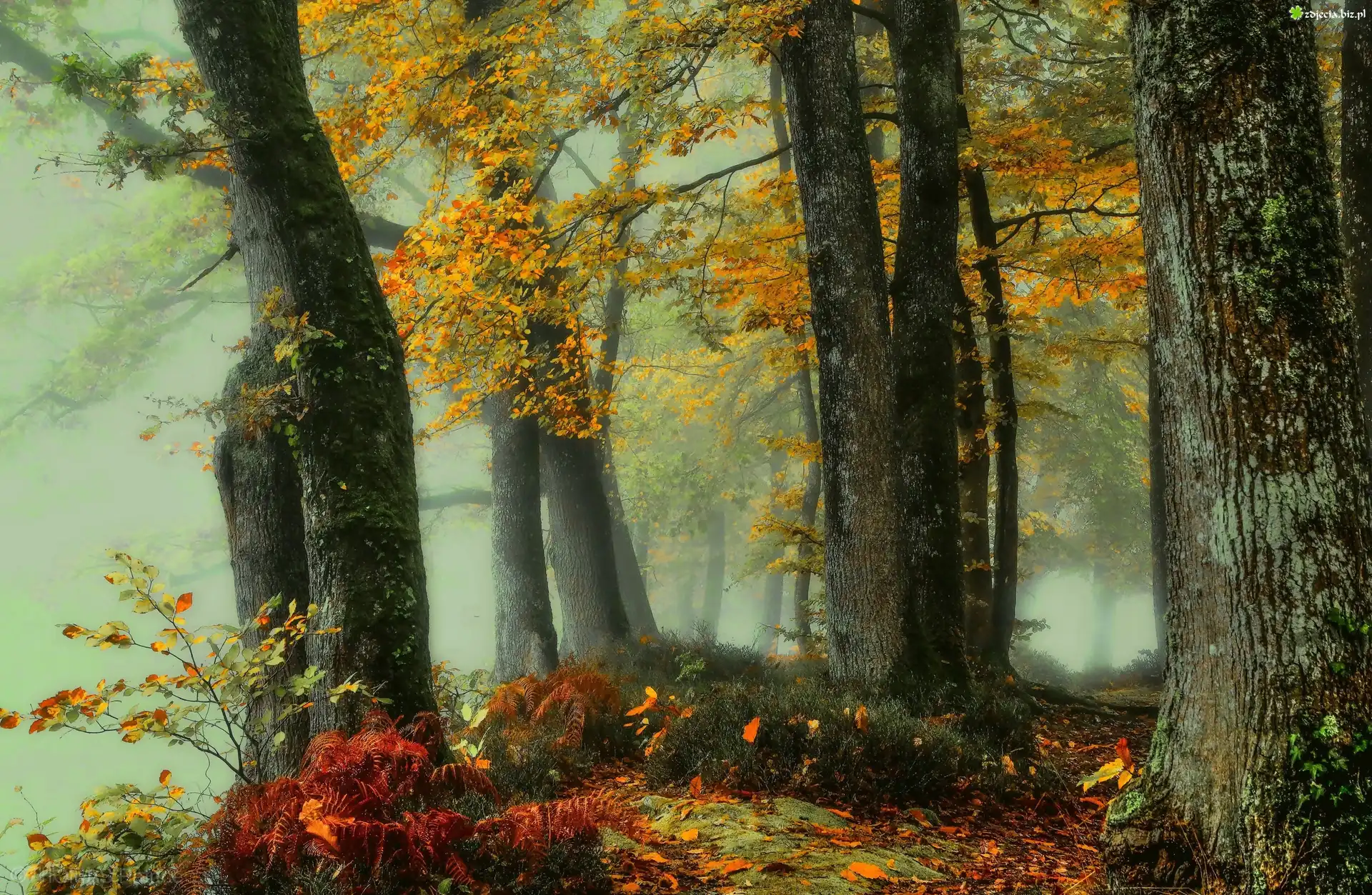 Zdjęcie, Jesień, Las, Drzewa, Mgła