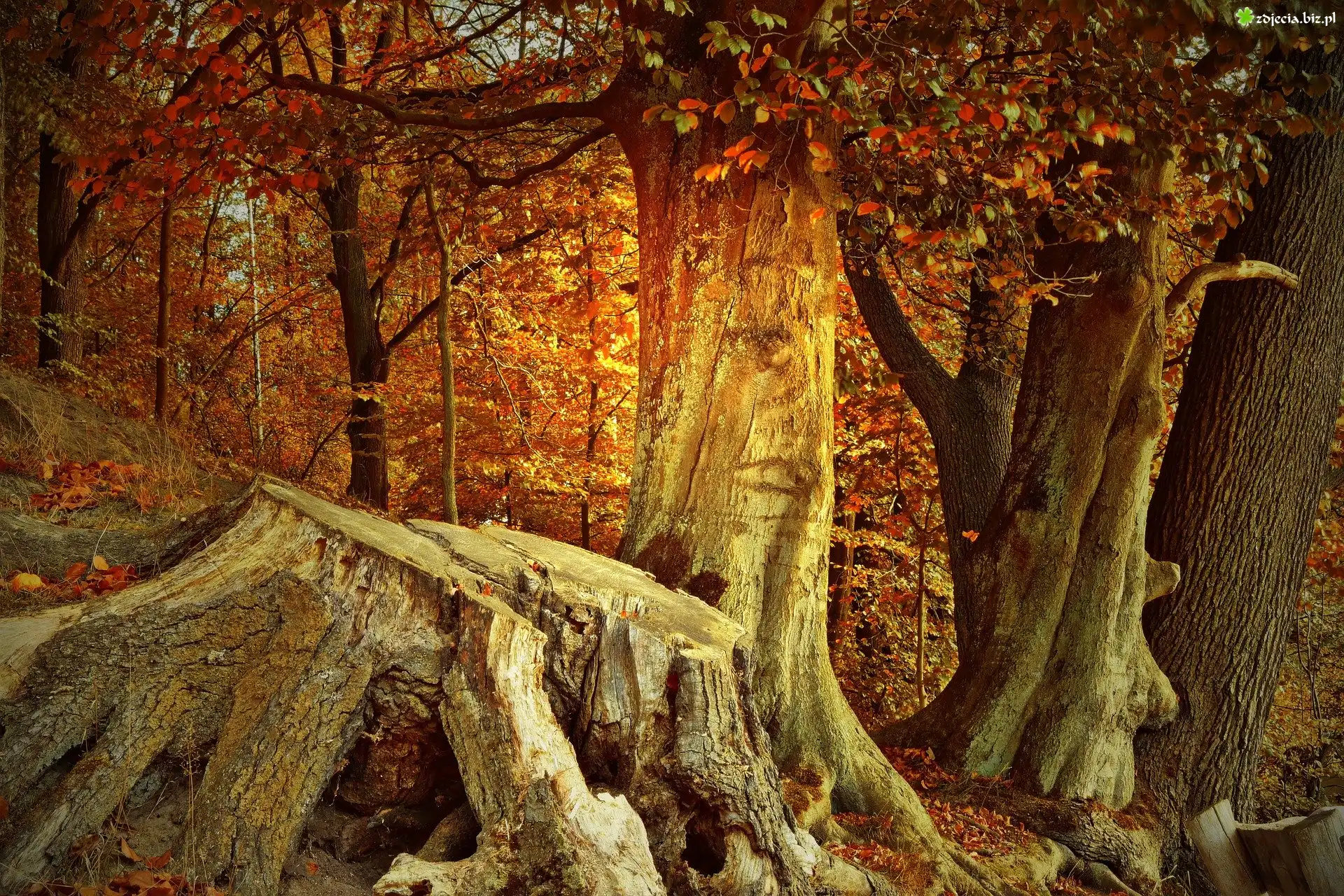 Zdjęcie Jesień, Las, Drzewa, Pniak