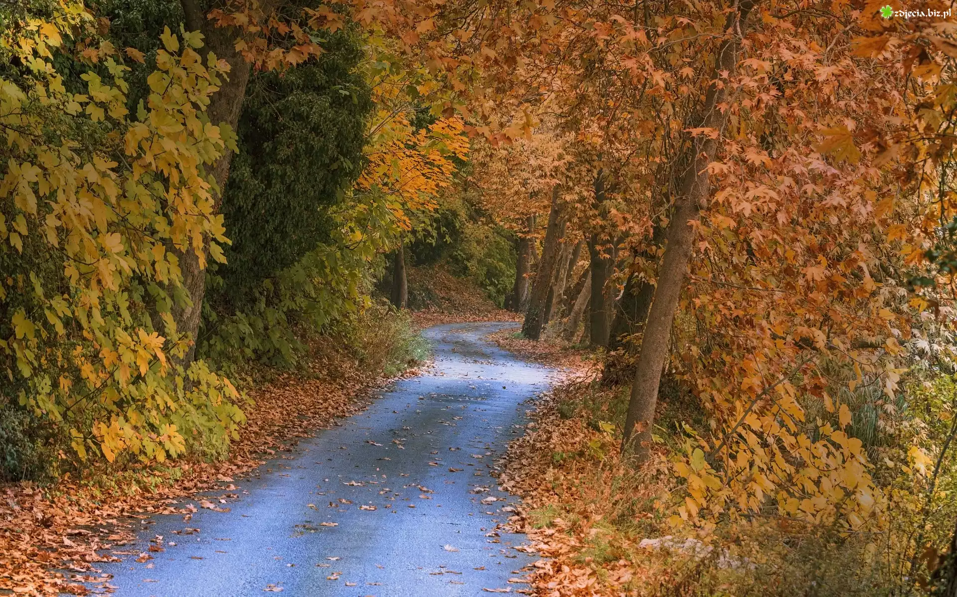Zdjęcie Jesień, Droga, Liście, Drzewa, Las