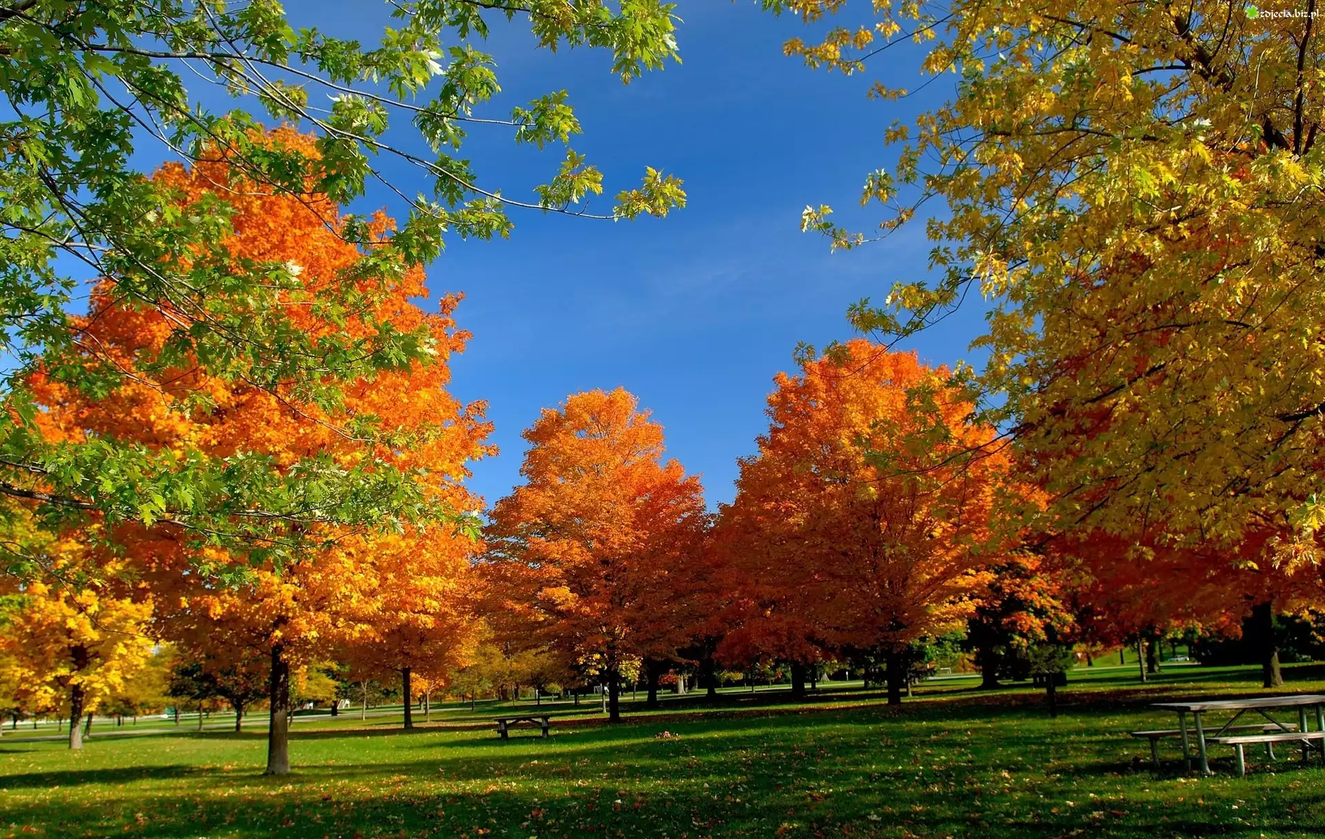 Zdjęcie Jesień, Park, Drzewa, Ławka