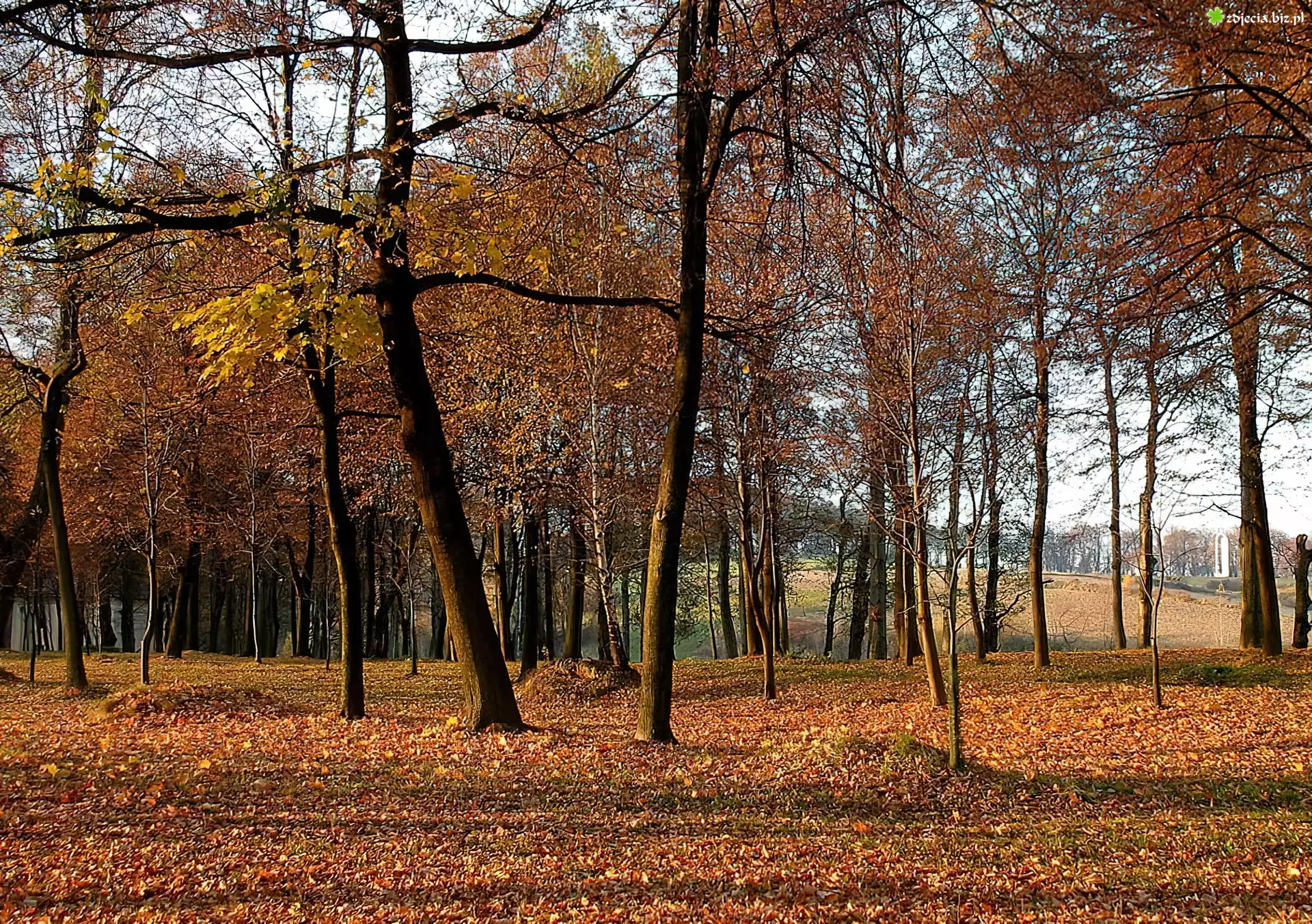 Zdjęcie, Jesień, Park, Drzewa, Liście
