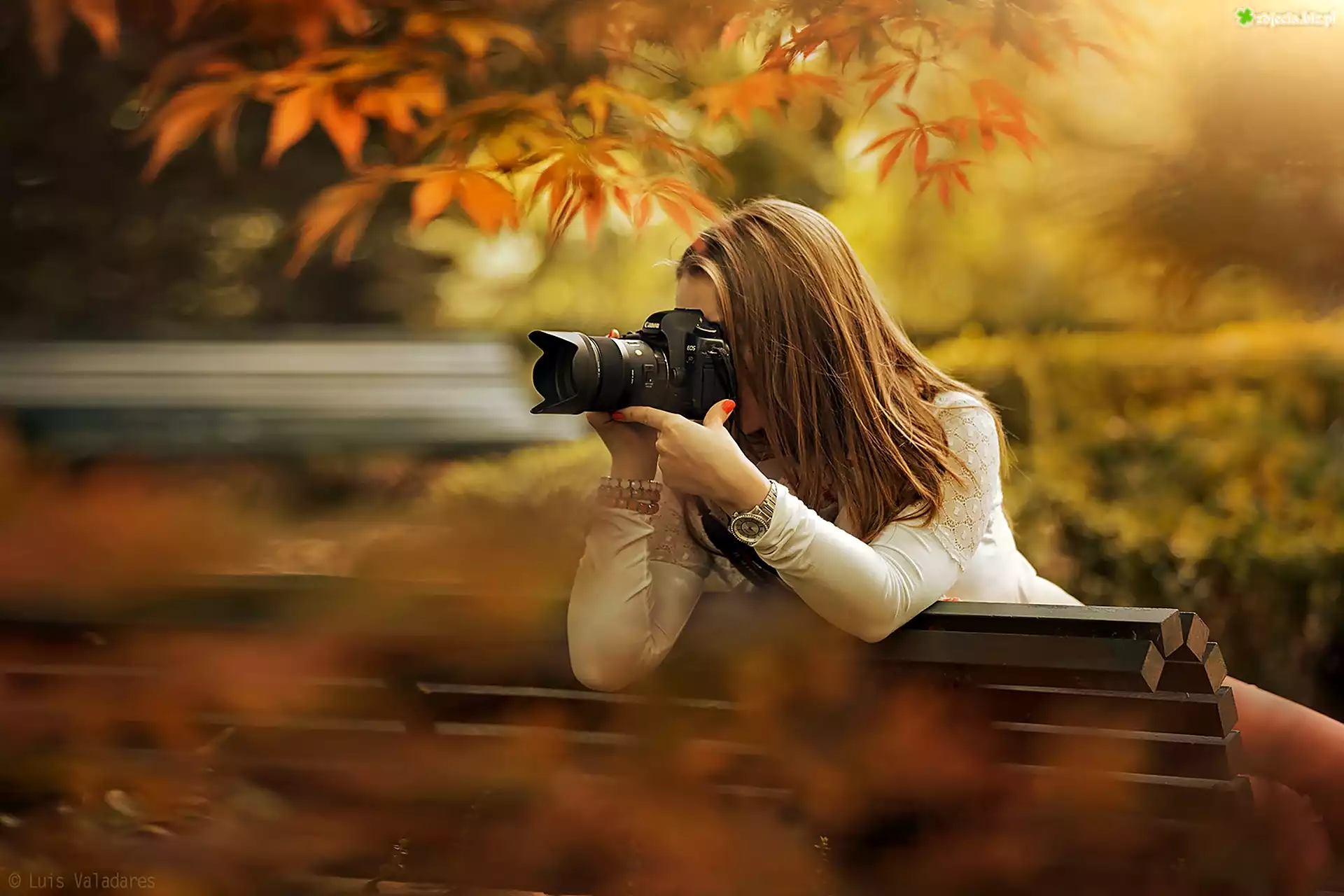Zdjęcie, Jesień, Kobieta, Aparat, Fotograficzny, Ławka