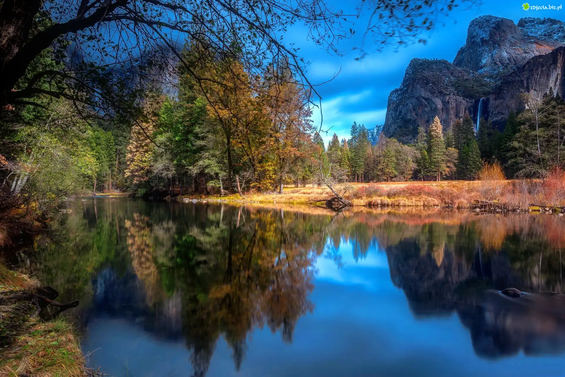 Zdjęcie, Jesień, Drzewa, Góry, Rzeka