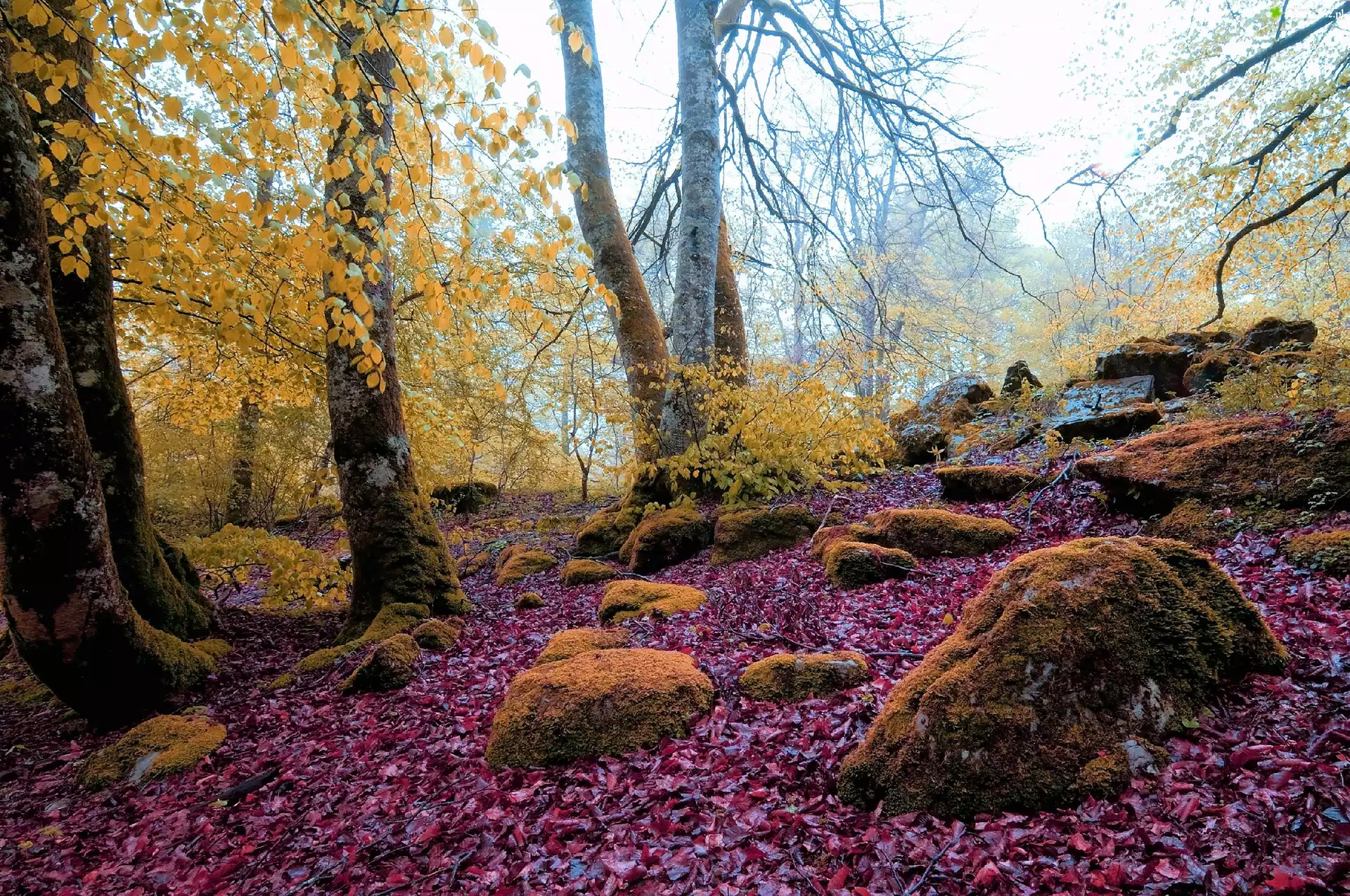 Zdjęcie, Jesień, Las, Omszone, Kamienie, Liście