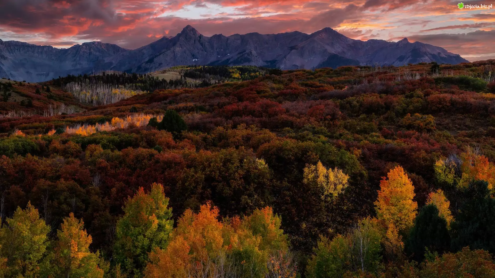 Zdjęcie Stany Zjednoczone, Kolorado, Dallas Divide, Góry, Lasy, Jesień