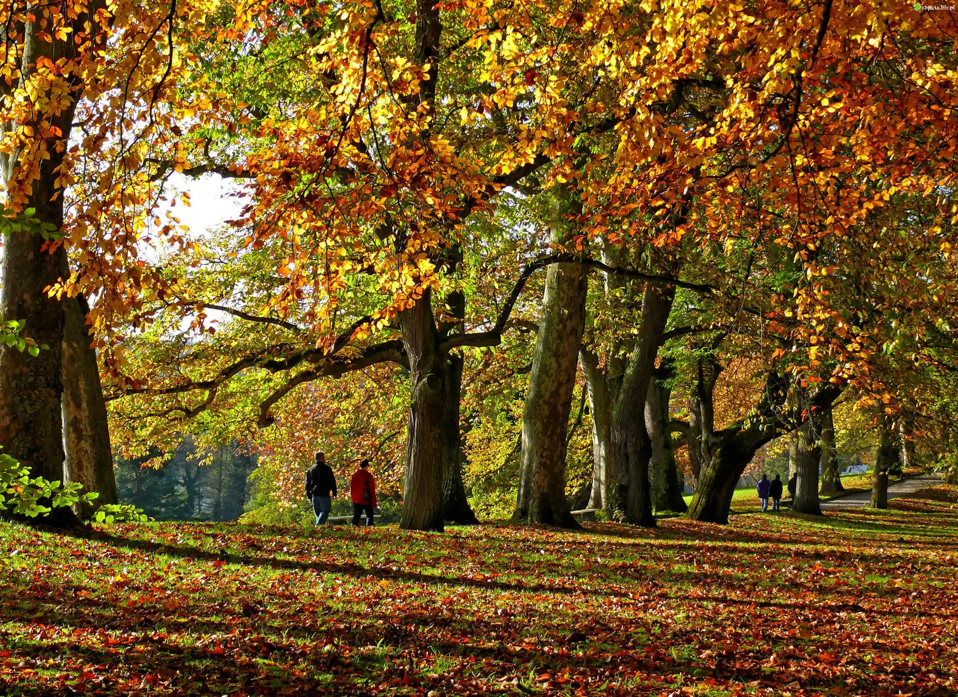 Zdjęcie Jesień, Park, Drzewa, Aleja, Kolorowe, Liście