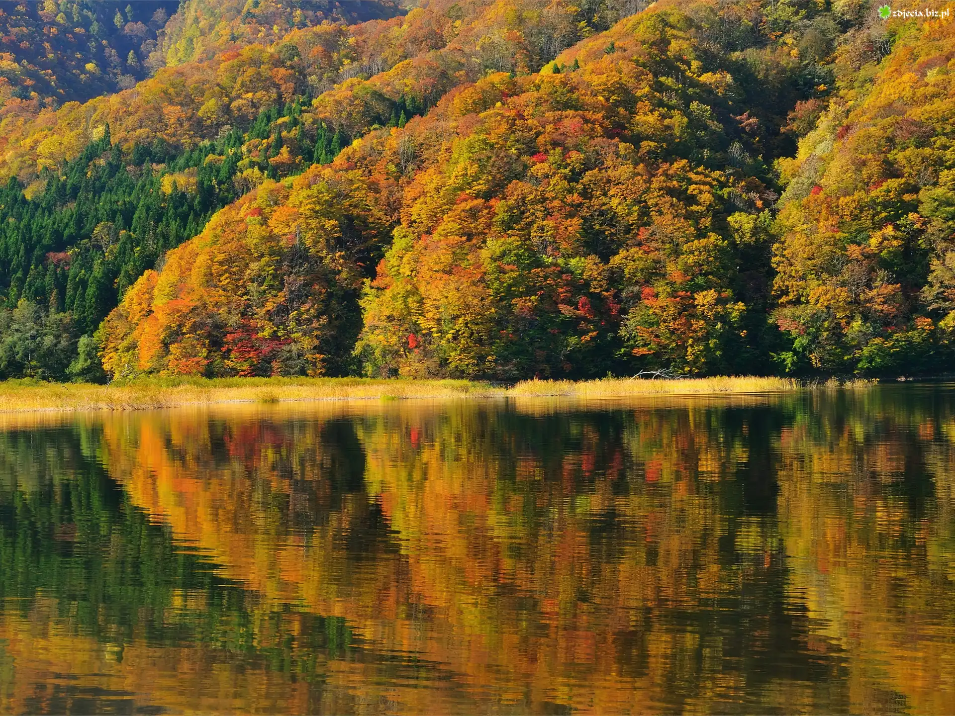 Zdjęcie Jesień, Las, Woda, Kolorowe, Liście