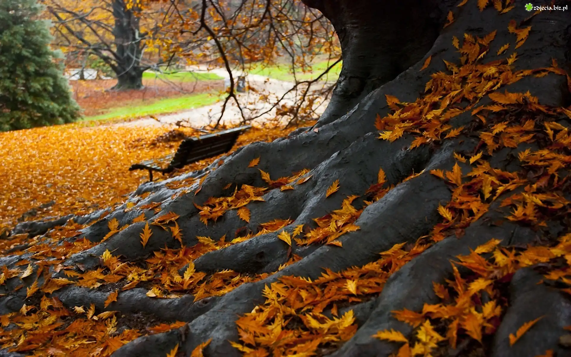 Zdjęcie Jesień, Drzewo, Korzenie, Liście