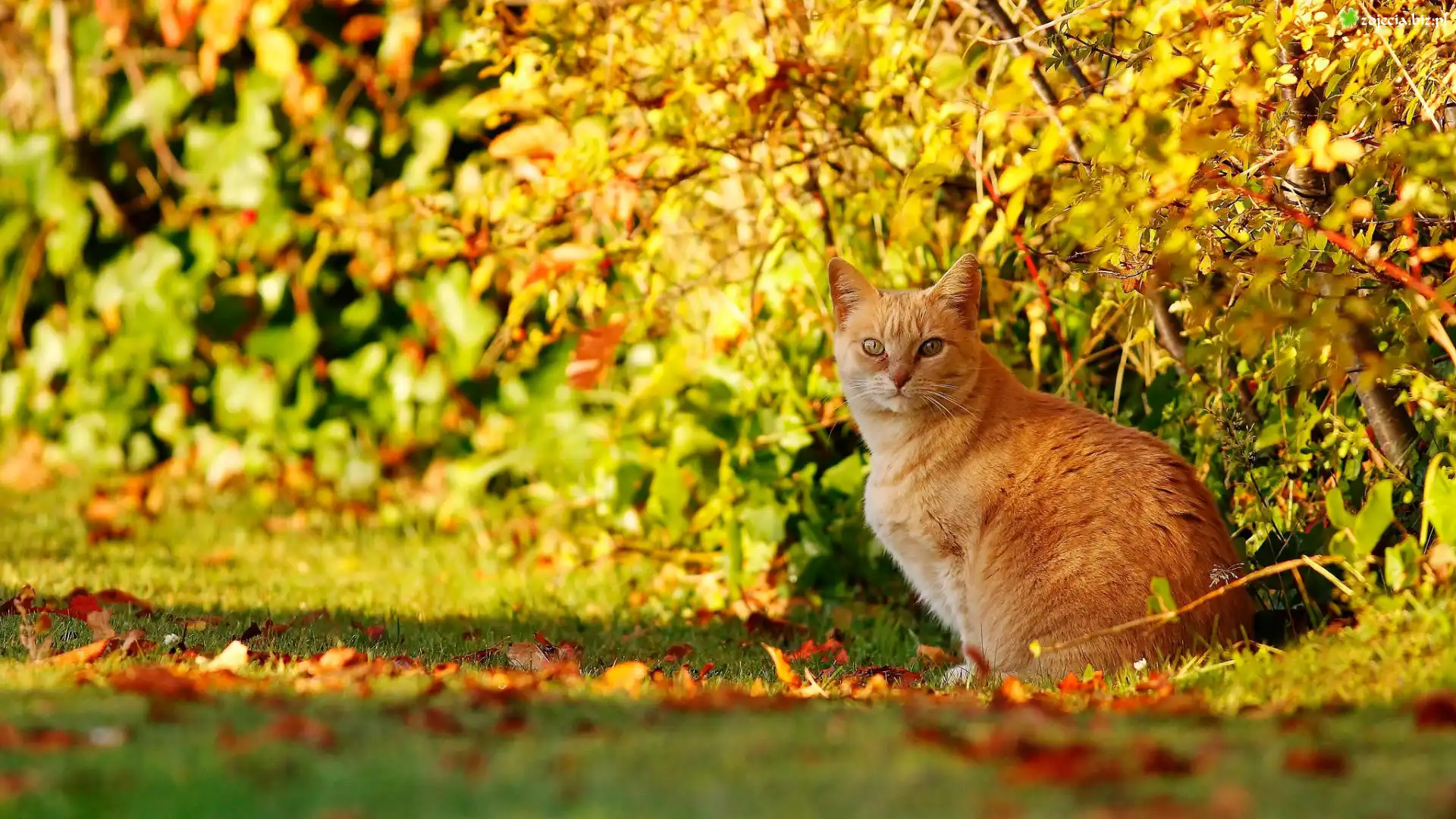 Zdjęcie, Jesień, Rudy, Kot, Krzewy