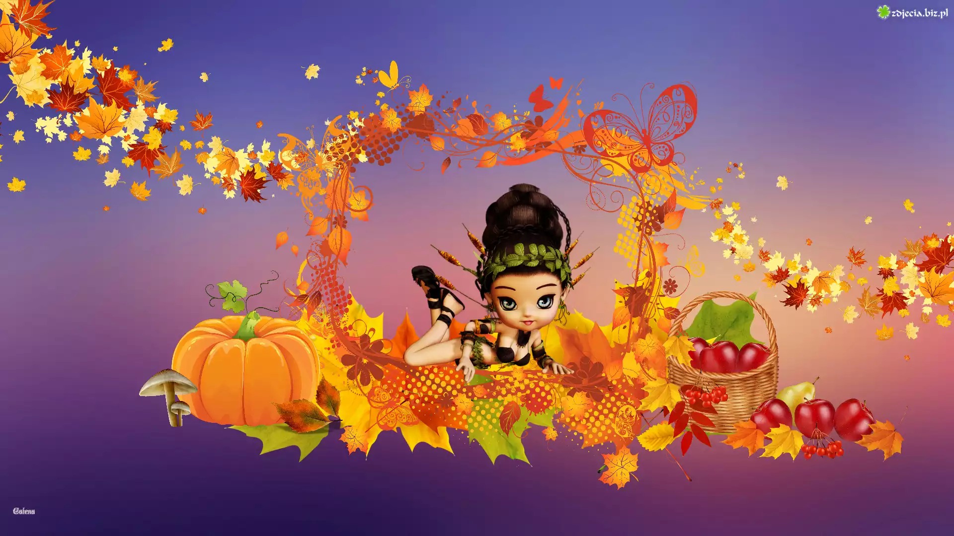 Zdjęcie Jesień, Liście, Dynia, Koszyk, Laleczka, Grafika
