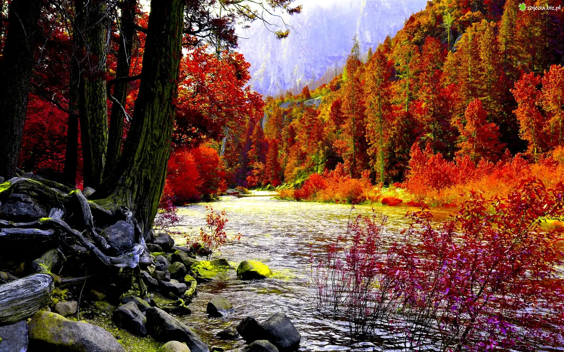 Krajobraz, Jesieni, Drzewa, Dróżka, Kolorowe, Liście Kasztany Góra, Skały Góry, Rzeka, Zachód, Słońca Góra, Rzeki, Most Las, Ścieżka Kajakarstwo, Rzeka Góry, Woda Wiosna, Mostek, Rzeczka, Domek Góra, Chmury, Kwiaty Zima, Las Góra, Skały Żółte, Liście, Potok, Kamienie Góra