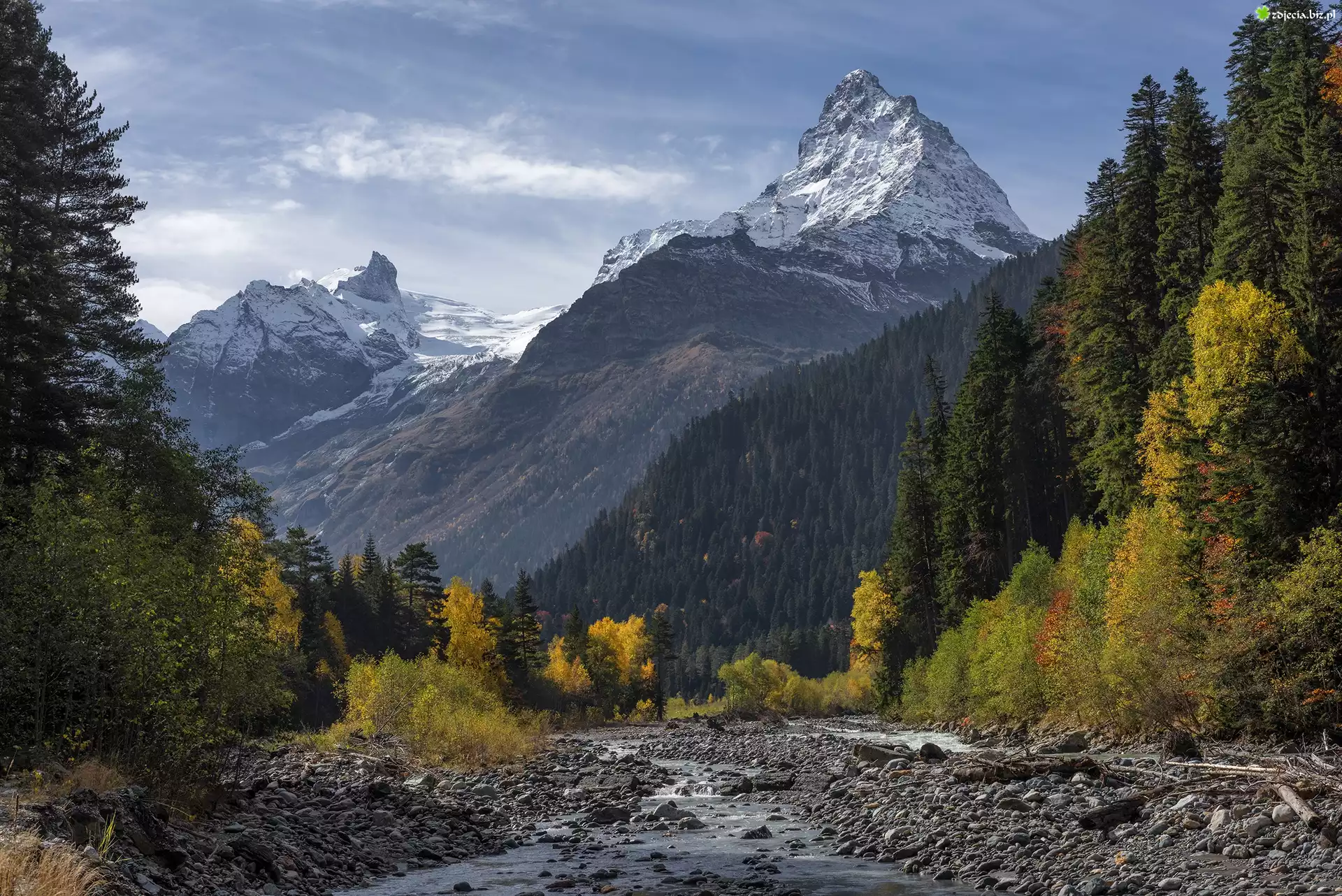 Zdjęcie, Jesień, Rzeka, Góry, Las, Kamienie
