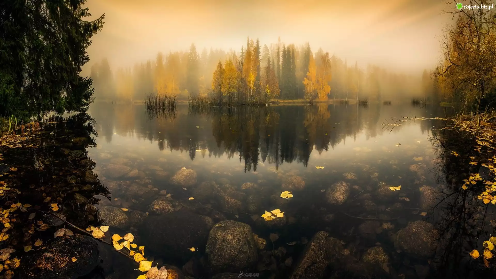 Zdjęcie, Jesień, Jezioro, Las, Mgła