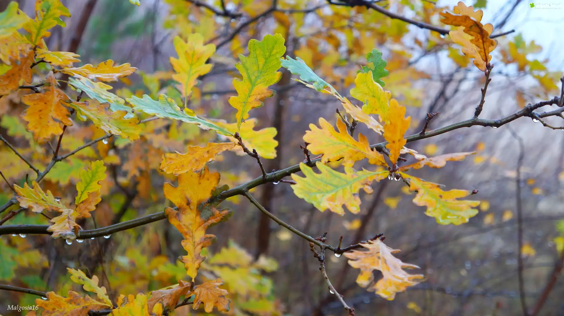 Zdjęcie Jesień, Gałązki, Liście, Dąb