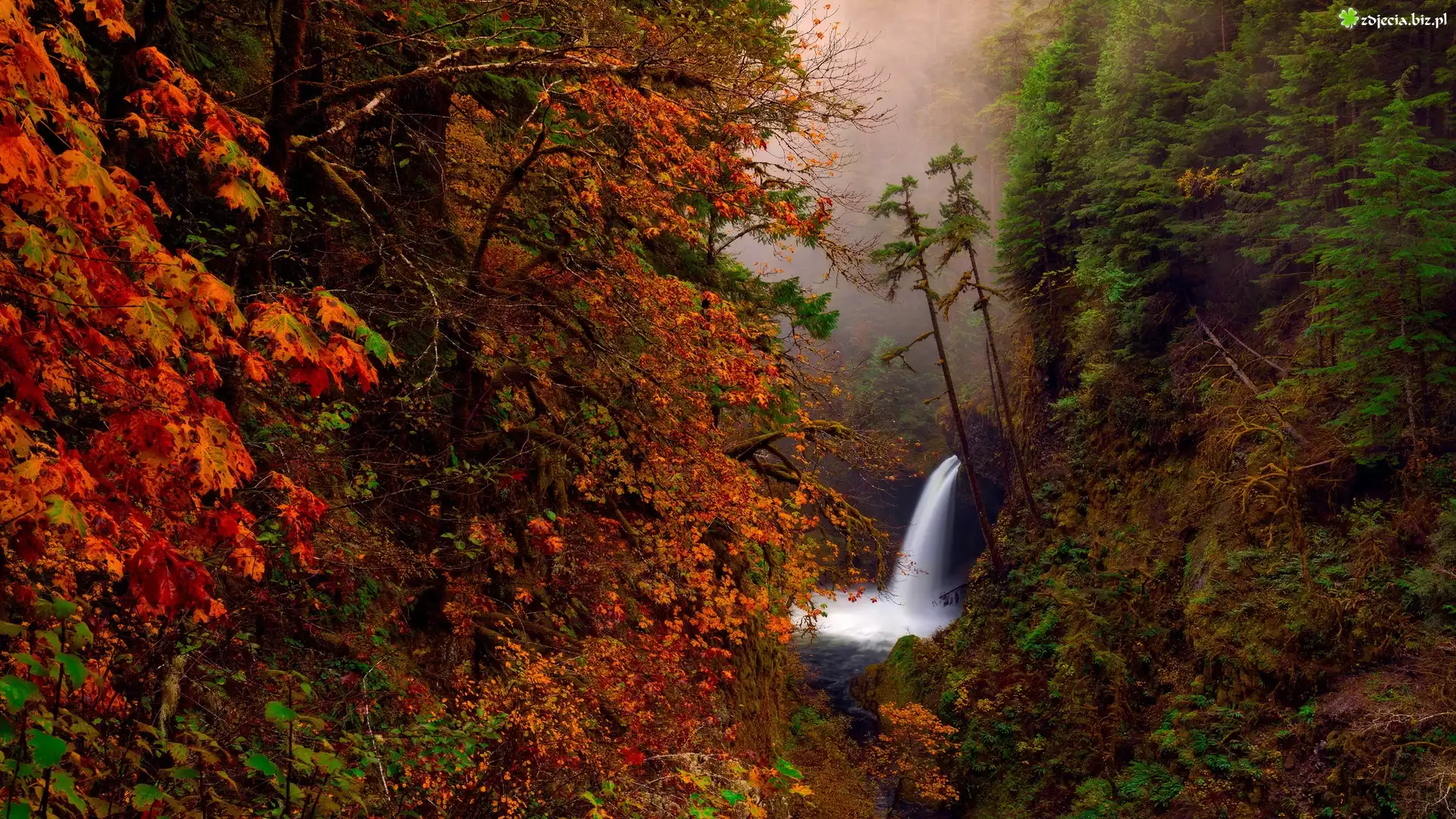 Zdjęcie Jesień, Las, Mgła, Wodospad