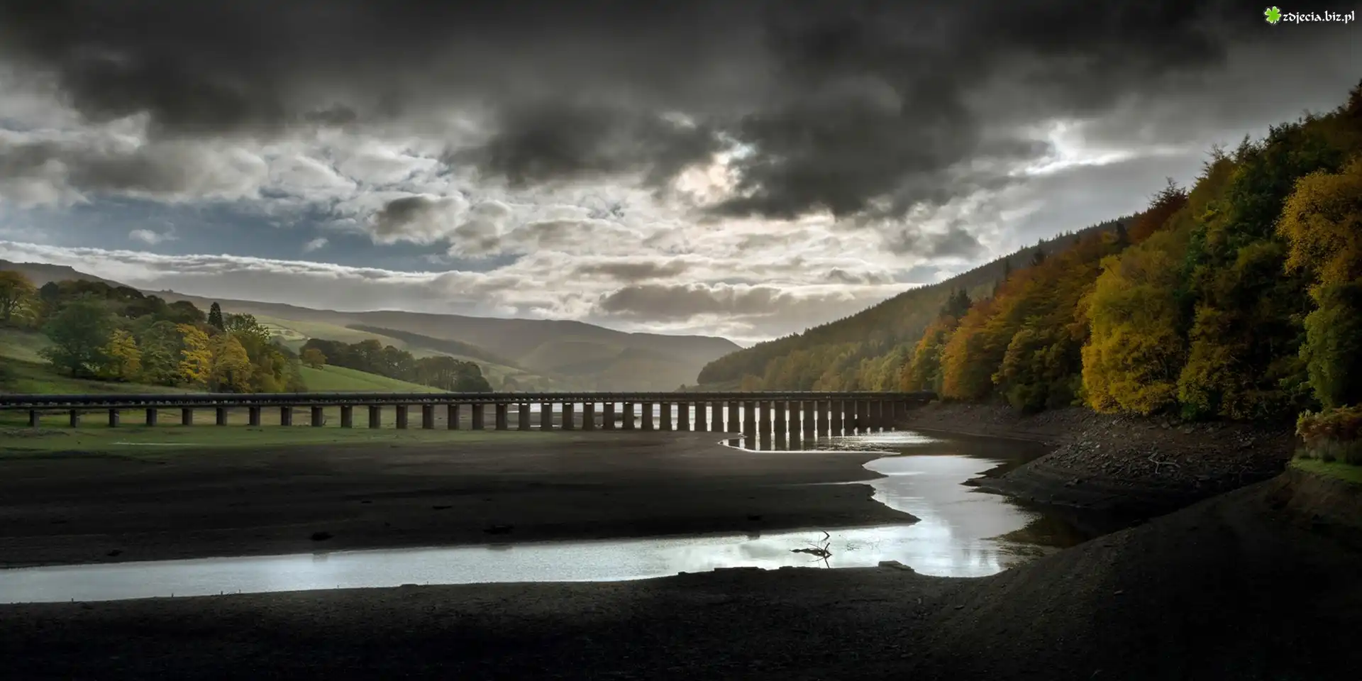 Zdjęcie Jesień, Rzeka, Most, Wzgórza