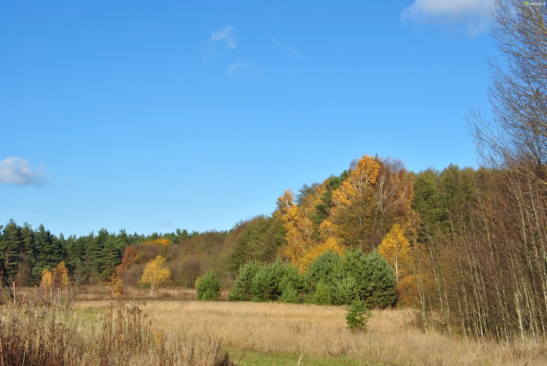 Zdjęcie, Jesień, Drzewa, Niebo, Łąka