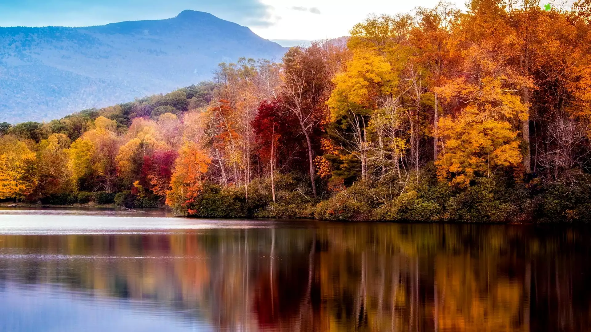 Zdjęcie Jesień, Las, Jezioro, Odbicie, Góry